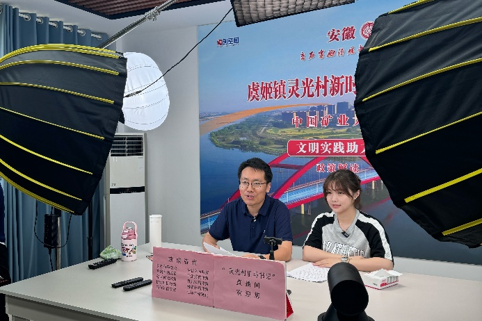 马明及村工作人员带领师生深入当地,围绕媒介使用习惯和媒介素养等问题展开调研并进行分析交流,师生共同参观灵光村“村播”现场,调试设备并入镜与工作人员共同直播,积极参与互动。