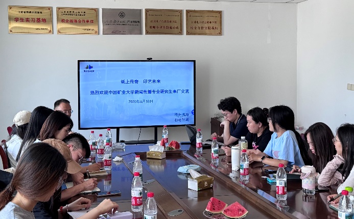 新闻传播学系师生前往江苏淮阴新华印务有限公司开展调研交流活动。新闻传播学系硕士生导师、中国矿业大学出版社副总经理潘俊成,出版社总编办公室主任何晓明及2024级新闻与传播硕士研究生参加调研。