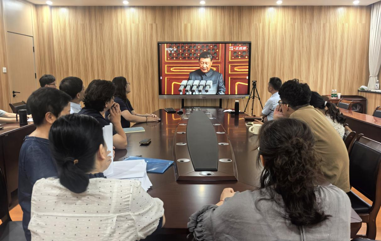 师生通过电视、网络等方式收看纪念大会,反响热烈。