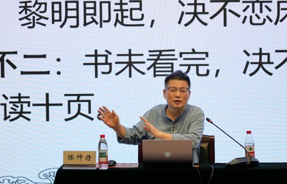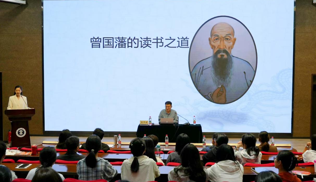 陈仲丹教授结合曾国藩的家书、日记等史料,从读书的价值、目的、方法等方面系统地解读了曾国藩的读书之道。他提到,曾国藩作为晚清重要的历史人物,是中国近代史上“立德、立功、立言”三不朽的典范,其读书勤勉、深湛思考、学以致用的品质和精神,对其事业成功起到了关键作用。陈仲丹教授指出,读书不仅是知识积累的过程,更是人格完善的重要路径。他引用曾国藩的“日课十二条”,系统阐述了曾国藩如何在日常实践中践行学问与自律,并结合丰富的历史案例与个人读书体会,深刻阐释了曾国藩“读书修身相融合”的智慧,引导青年学生既要领悟“读书明理”,读透书中蕴含的道理与智慧,也要坚守“读书有恒”的信念,用持之以恒的阅读习惯积累知识、提升自我。