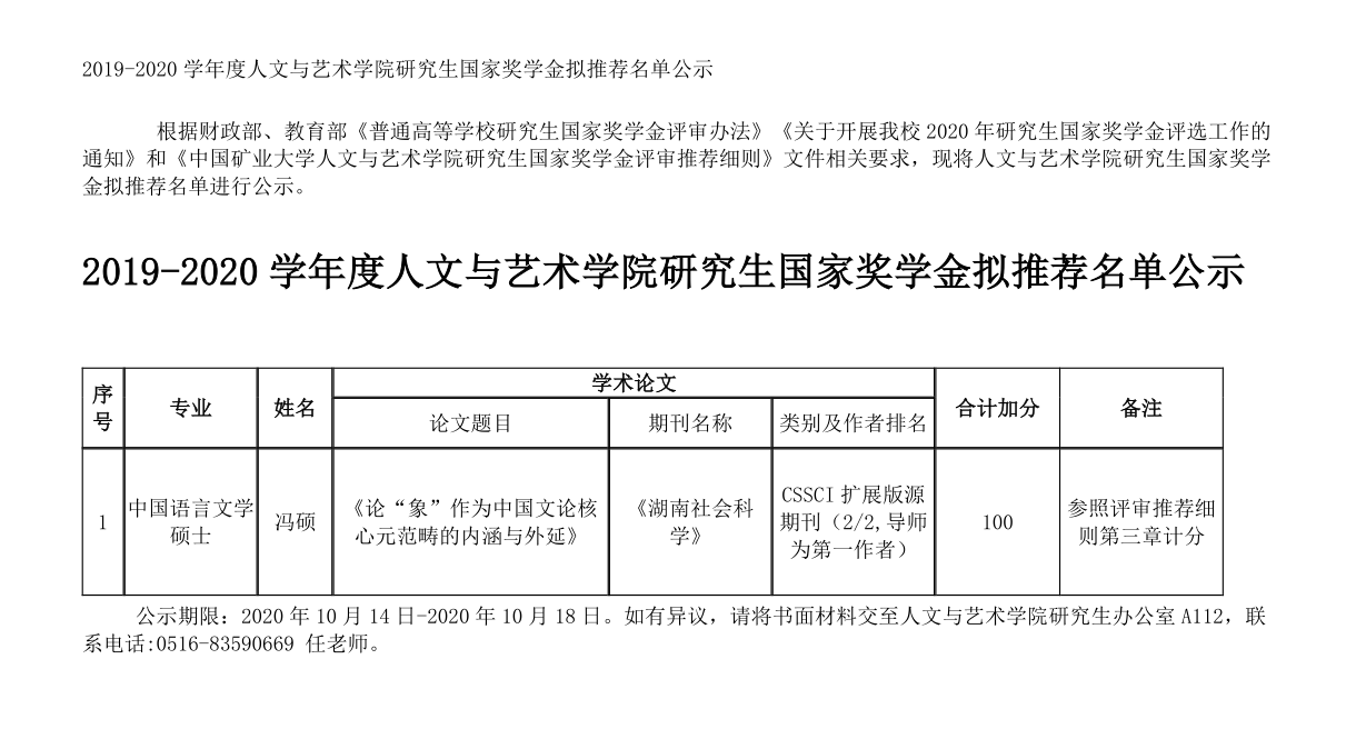 2019-2020学年度必发博彩 研究生国家奖学金拟推荐名单公示