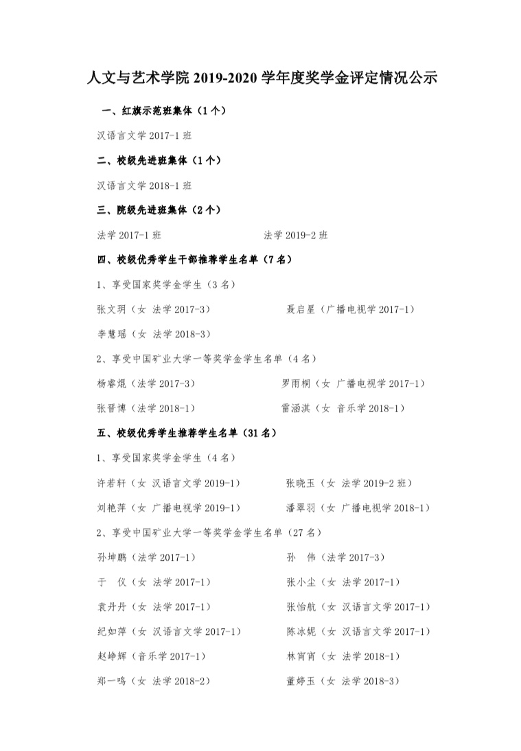 必发博彩 2019-2020学年度奖学金评定情况公示
