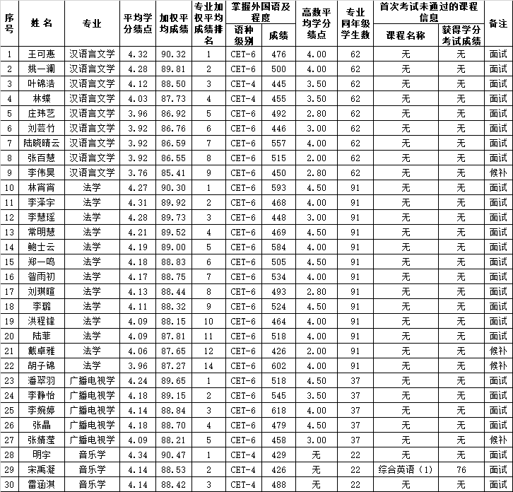 根据学校和必发 2022年推荐优秀应届本科毕业生免试攻读研究生工作的通知和实施办法,经学生自愿申请、必发 推荐免试研究生工作领导小组审查,现将必发博彩 推荐2022年普通类免试攻读研究生情况予以公示,公示期为2021年9月17日-9月19日,公示期间如有问题,请联系必发 教学管理办公室,联系人:王老师,电话:83590112。