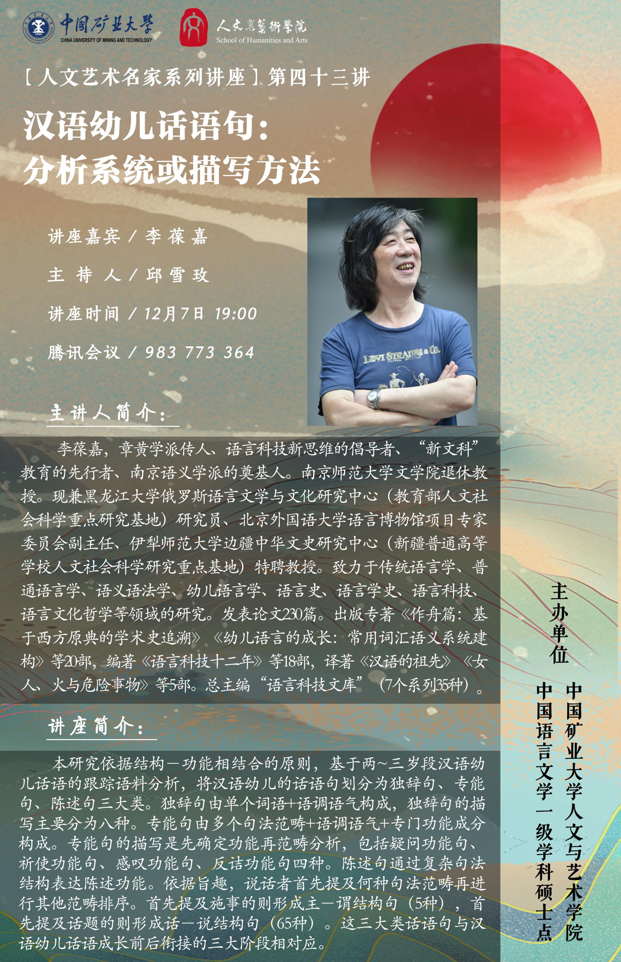 主讲人简介:李葆嘉,章黄学派传人、语言科技新思维的倡导者、“新文科”教育的先行者、南京语义学派的奠基人。南京师范大学文必发
