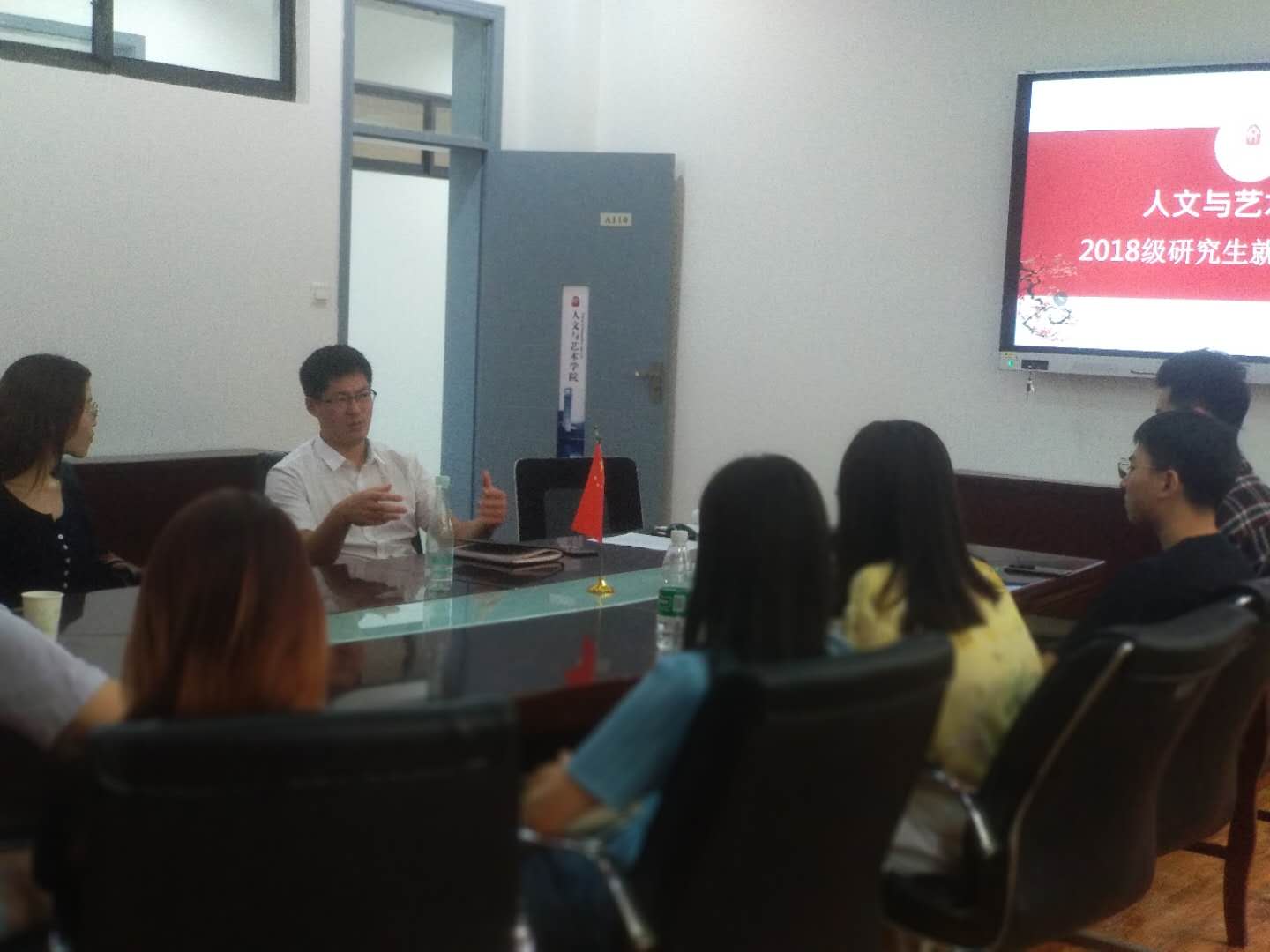 研究生与科研办任老师关于就业派遣报道的相关流程对各班班长做了简要说明,强调了三方协议签订的注意事项,同时对2018级硕士研究生表达了美好前程的祝愿。