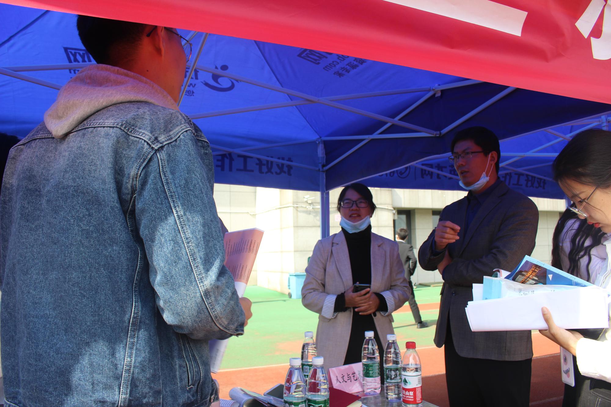 2021届毕业生积极参与此次双选会,同时丁恒星书记和李玉雪老师也来到了现场了解招聘情况,给前来应聘的同学进行就业指导。