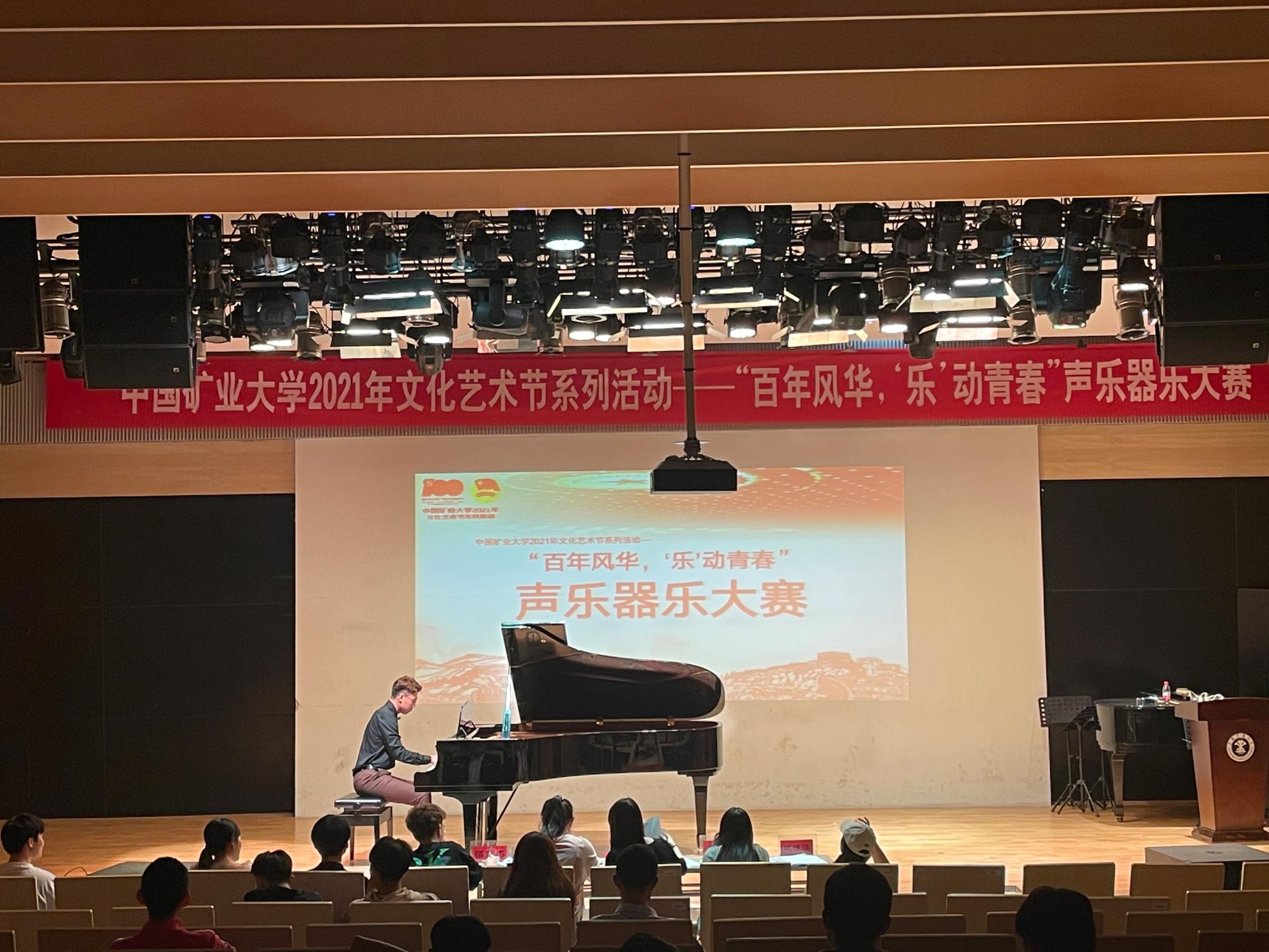 报告厅举办了“百年风华,‘乐’动青春”——中国矿业大学2021年文化艺术节系列活动声乐器乐大赛初赛。院学生会主席宋禹凝、团委实践部部长韦紫奡,舒伯特钢琴大赛银奖梁钦杰、第六届江苏省大学生展演声乐专场合唱组二等奖获得者臧捷涵、声乐器乐大赛二等奖获得者崔冬月同学共同担任本次比赛评委。