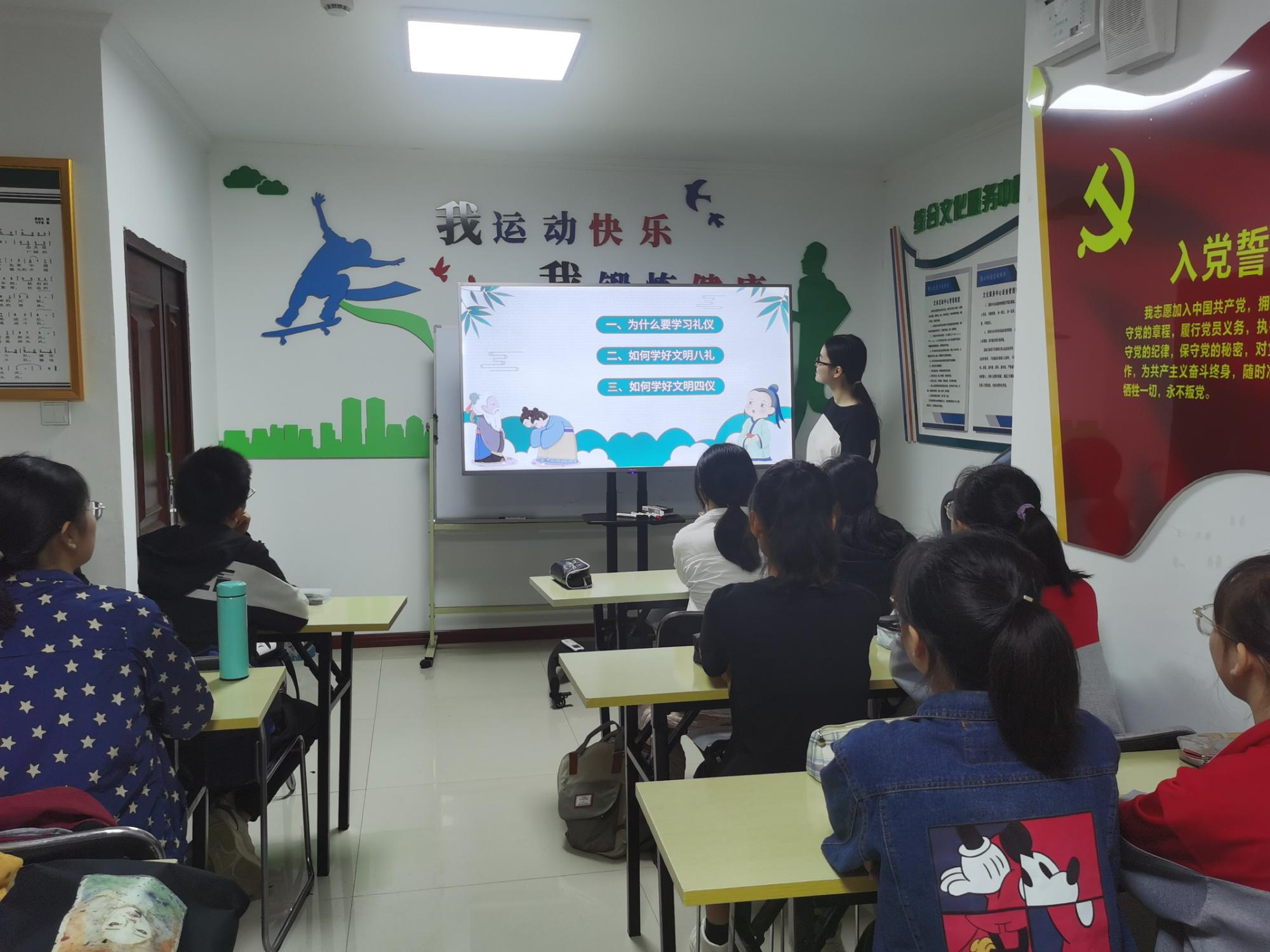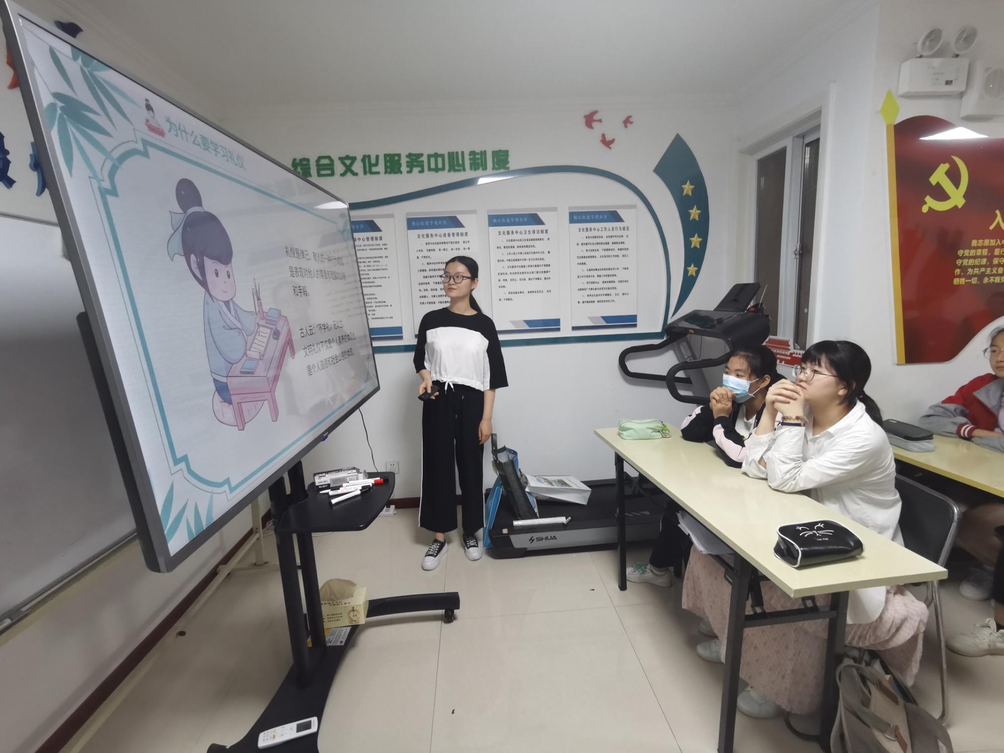 青年志愿者协会暑期社会实践团铜山街道团队于徐州市铜山区天赋广场小区新时代文明实践站开展八礼四仪教育活动。本次活动主要是为了提高孩子们对中国传统文化中礼仪的认识,团队成员对文化礼仪进行了详细的讲解。