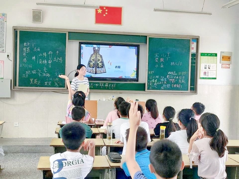 7月22日,“童享阳光,青春护航”活动团队在徐州市汉王镇铜山汉王小学开展第四天的授课。本地区活动由朱宣颖负责,与万笑颜共同负责授课。本日的课程安排为“爱国教育”、“趣味绘画”、“纸墨我心”以及“课业辅导”。