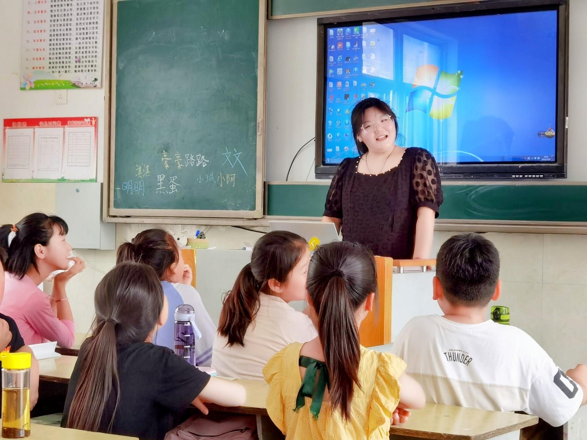 青年志愿者协会“童享阳光,青春护航”暑假社会实践团队的队员们在徐州市汉王镇铜山汉王小学正式开启活动。本地区活动由朱宣颖负责,与万笑颜、孟宇两位同学同学共同授课,课程内容主要有自我介绍、趣味绘画、声声入耳和纸墨我心。