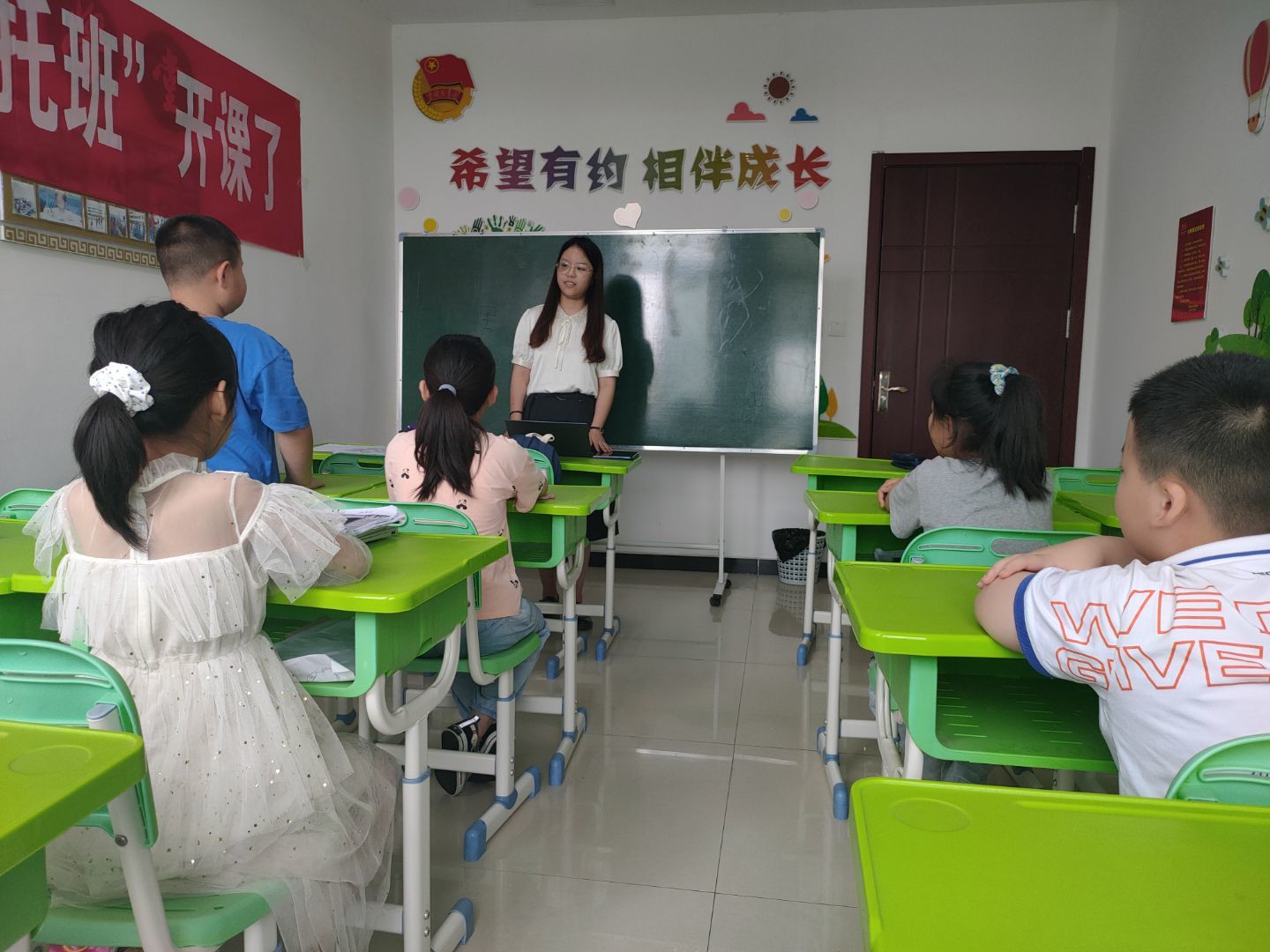 青年志愿者协会组织的“童享阳光,青春护航”暑托班正式开课,新区街道小组与铜山区新区街道团委书记王春花见面对接相关事宜后,开始了暑托班第一天的课程。