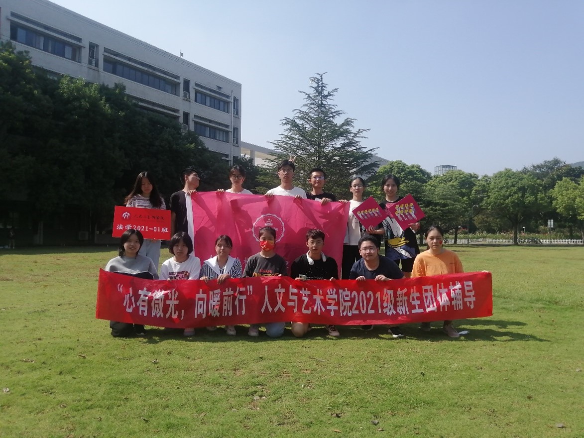 大学生心理自助中心于教五大草坪举办“心有阳光,向暖前行”2021级新生入学团辅活动。
