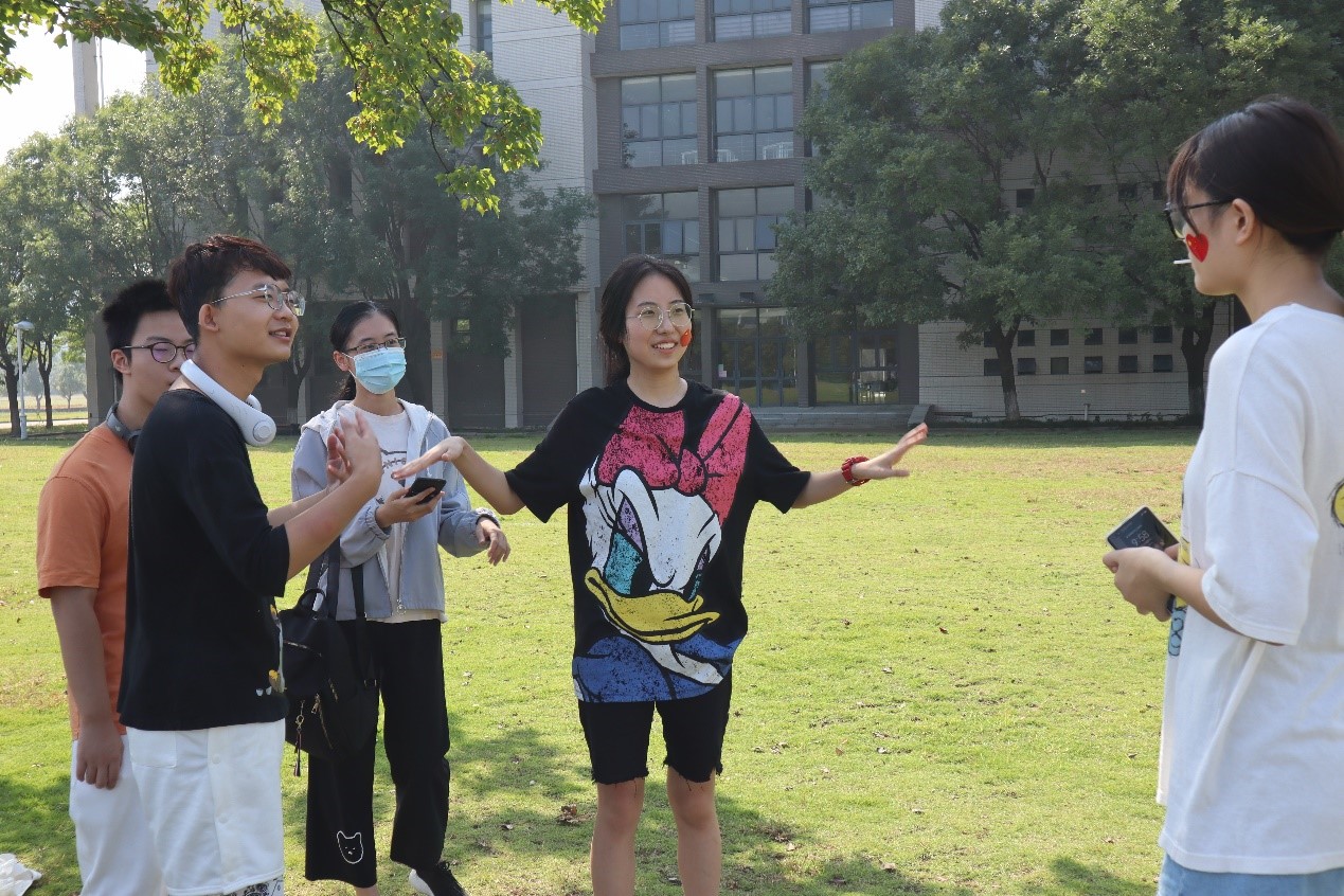 秋高气爽,21级新生朝气蓬勃,列着长队来到教五大草坪。大家交谈活跃,对此次活动满心期待。在心自助部长们的带领下,团辅活动以班级为单位共划分为八个团队开展,内容以一系列轻松活泼的小游戏为主,让同学们体会团体活动的乐趣,借此凝聚感情、团结力量。同时,在礼品环节与“惩罚”机制中融入迎国庆的元素,增添节日氛围,感怀伟大祖国。
