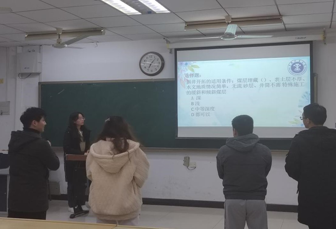 承办的中国矿业大学第六届煤炭知识竞赛决赛在博学楼四C308进行。在赛场上同学们斗志昂扬,激情澎湃,面对一道道难题越战越勇,毫不退缩。