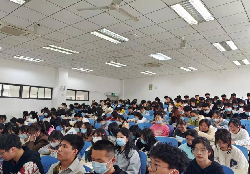 李玉雪老师则以大学生涯规划为主题与同学们进行了交流。她首先对上学期大家的表现进行了肯定,从德、智、体、美、劳五个方面呈现“可圈可点的我们”。然后强调树立个人发展目标的重要性,她借用毕业校友及她本人亲身经历为同学们讲解了目标在资源整合、动力维持方面的作用。接着她指出同学们应尽早从“考研、考公、企业就业”三个方面明确个人发展路径,借助生涯导师和朋辈督促力量,充实过好大学生活。最后,她强调运动和读书的重要性,号召同学们健康体魄,涵养精神。