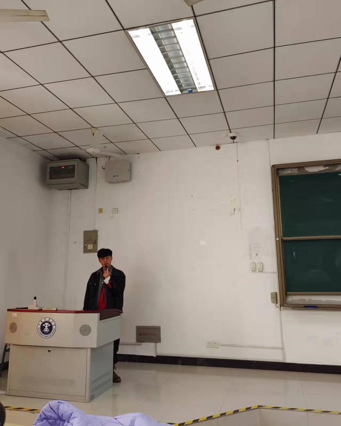 首先,刘世学老师从“内卷”和“躺平”两个词入手,引入新学期我们同学应有的学习态度,强调“凡事预则立,不预则废——做好大学生涯规划”,告诉我们“自由的界限在哪——做好自我约束管理”。随后刘老师从日常生活入手,在早操、安全、晚点名和健康打卡方面提出了具体明确的要求,尤其针对学业分析、预防电信诈骗、疫情防控期间的请销假、以及爱国卫生运动方面进行了强调。