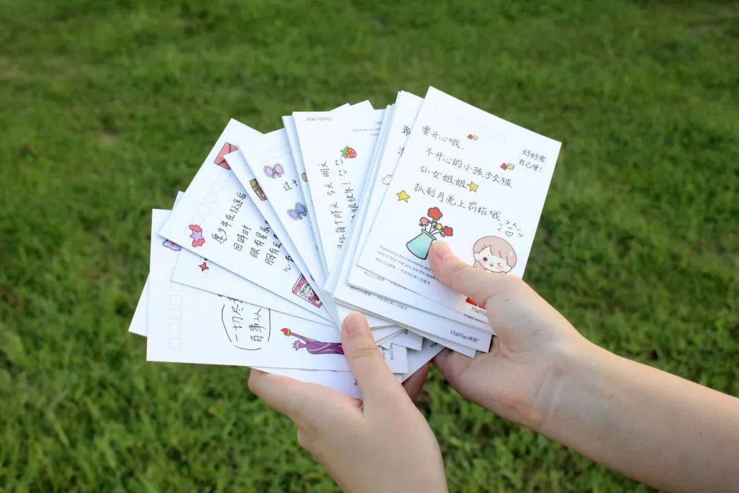 游戏结束后,所有新生在明信片上写下自己对同班同学的祝福。这些明信片在被收集后,又被随机发到每位新生手中。心自助的学长学姐也为新生精心准备了的寄语卡片,为他们送去惊喜与美好。最后,大家进行合影留念,将这温馨记忆长久留存。音乐一班的吴禹熹同学说:“丰富多彩的小游戏,锻炼了我团结协作的精神和团队意识,通过这次的团辅活动,我对班级的同学有了更深刻的印象,也更加了解身边的人。”