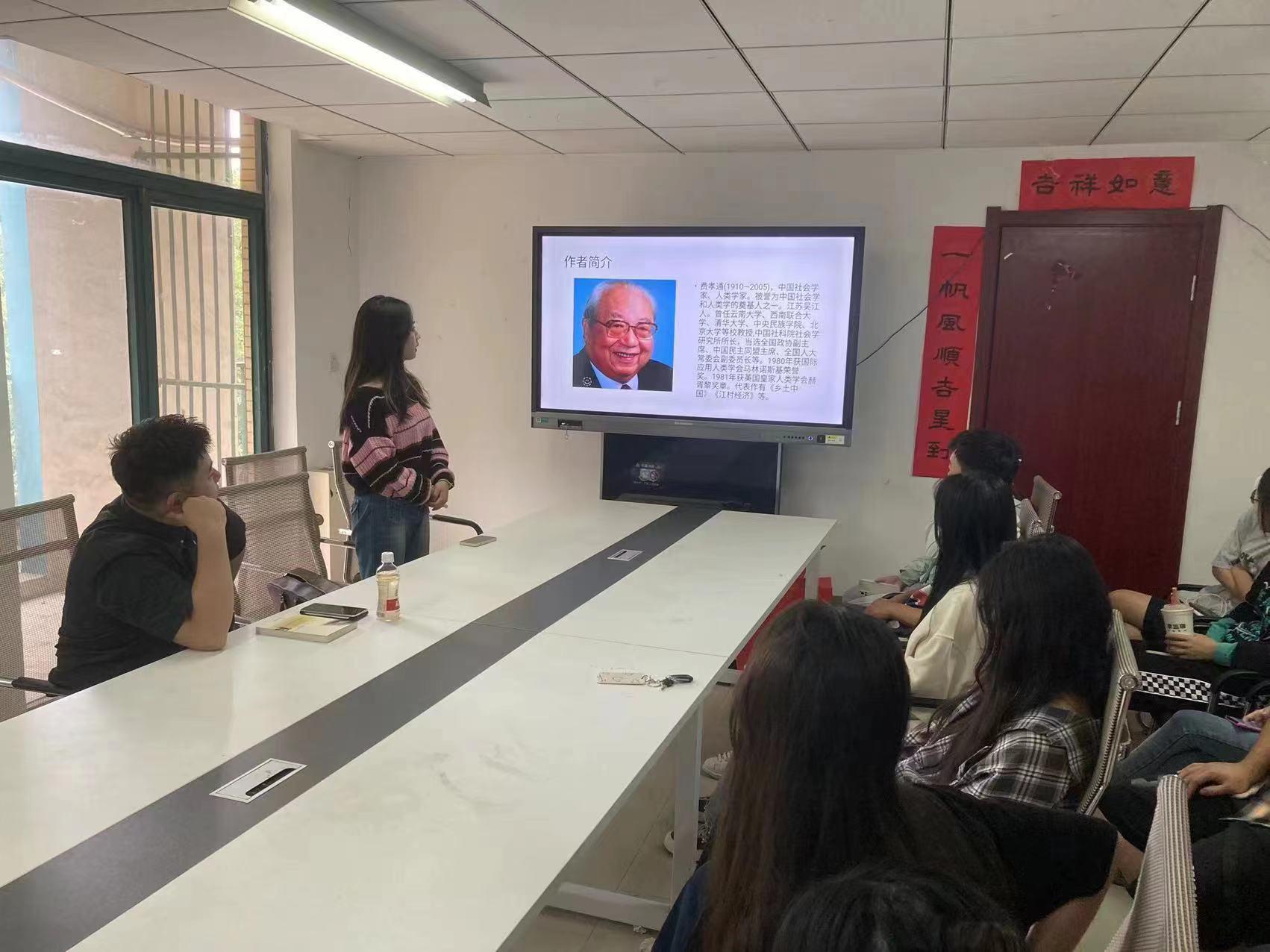 本次活动开启了“我与班级共读书”第一期读书会,围绕费孝通《乡土中国》一书展开,由董德老师主讲,周金花同学主持。活动中,董老师首先以“城乡之间深刻的分野——读费孝通《乡土中国》”为主题,以“乡土性”的中国社会为出发点,分别从乡村社区、文化传递、家族制度、道德观念……等诸多方面深度解剖中国乡土社会的基本结构。在漫谈体会和自由讨论环节中,同学们交流了自己的阅读心得和阅读体会,并展开了积极的讨论。