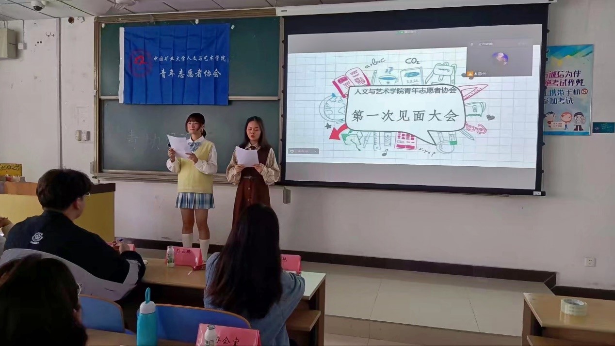 青年志愿者协会于博四A402教室召开第三届人文青协见面大会,协会指导老师丁子瑞出席本次会议,青协主席团、部长团成员及各部门干事参加会议。