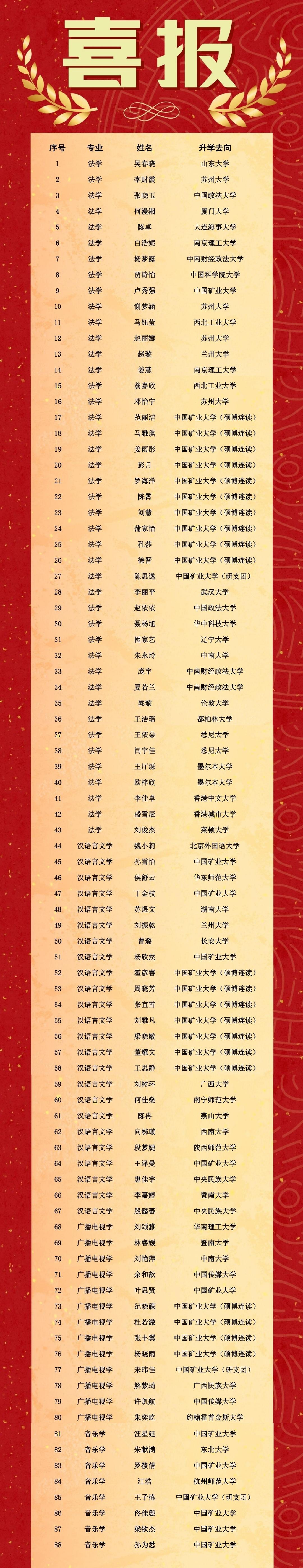 必发博彩 2019级学子升学名单一览