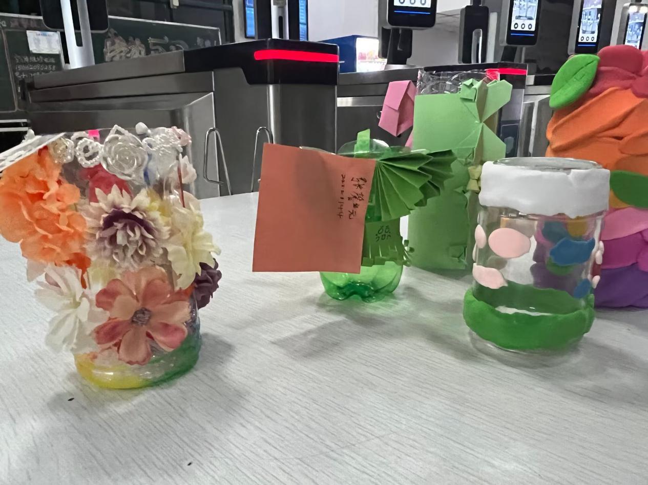 每年4月22日被国际定为世界地球日,这是一个专为保护环境而设立的节日。在本次活动中,志愿者们发挥创意想象,对废旧塑料瓶进行艺术改造,或裁剪拼贴,或雕刻绘画,通过巧妙设计充分挖掘废旧塑料瓶的剩余价值。经过志愿者的二次创作,塑料瓶从“废品”变成了置物箱、收纳盒、笔筒,或是美丽的“艺术品”,兼具了实用和审美价值,以新的姿态展示出同学们绿色低碳的环保理念与践行环保的无限可能。