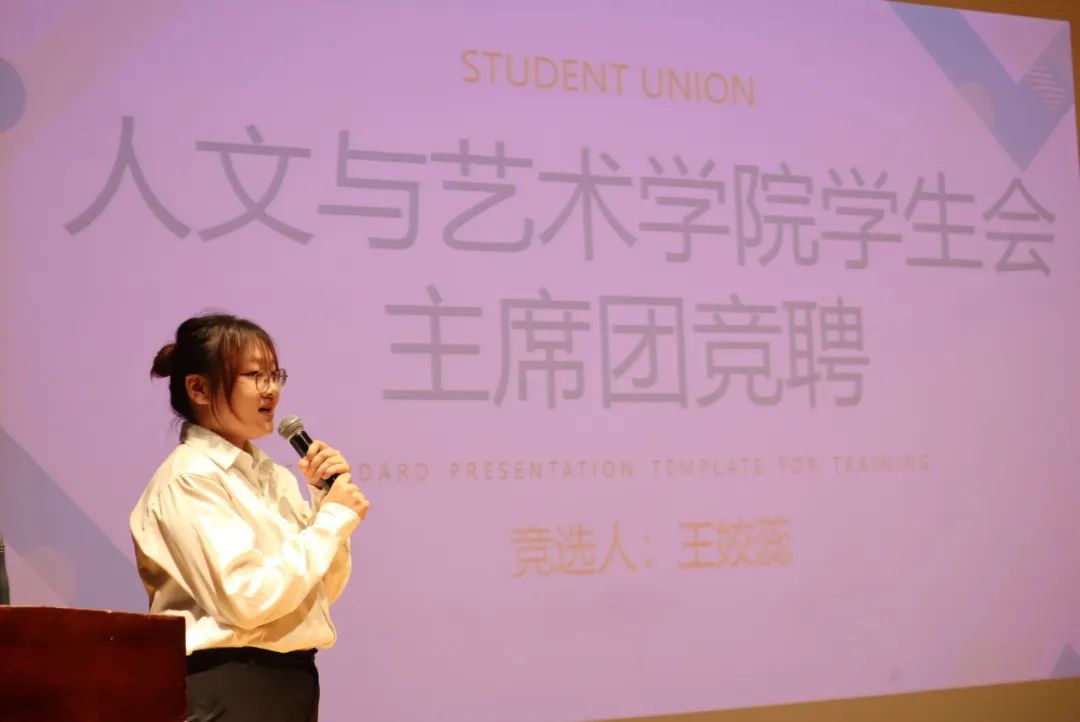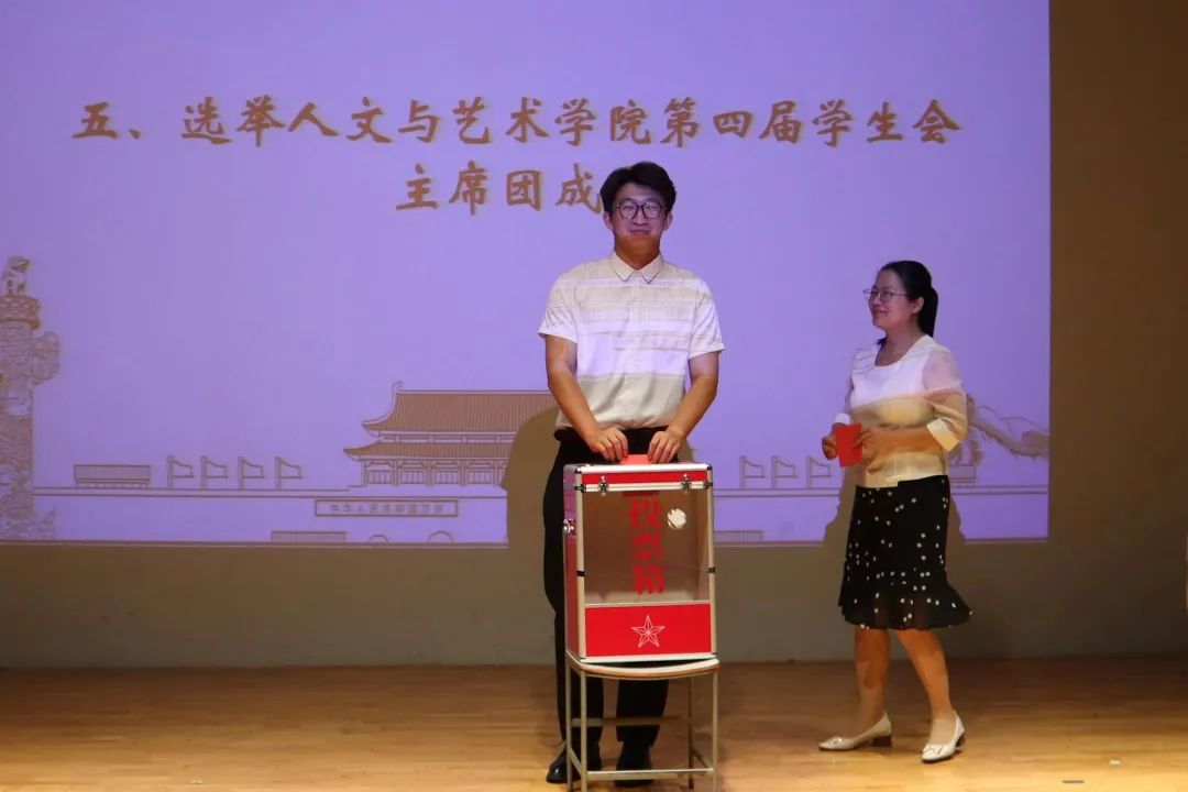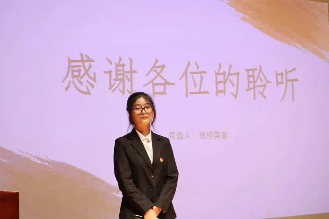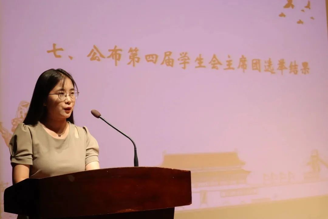 会上,第四届学生会主席团成员候选人作竞职演讲。葛俊青、刘志贤、秦越蕾、王姣蕊、杨梓美慧就个人简历、工作经验、自身优势和工作展望等方面依次进行现场陈述,并回答了学生代表和老师提出的问题。所有候选人展示完毕后,参会学生代表和老师依次上场进行投票。大会总监票人范丽洁宣布了本次大会选举结果。