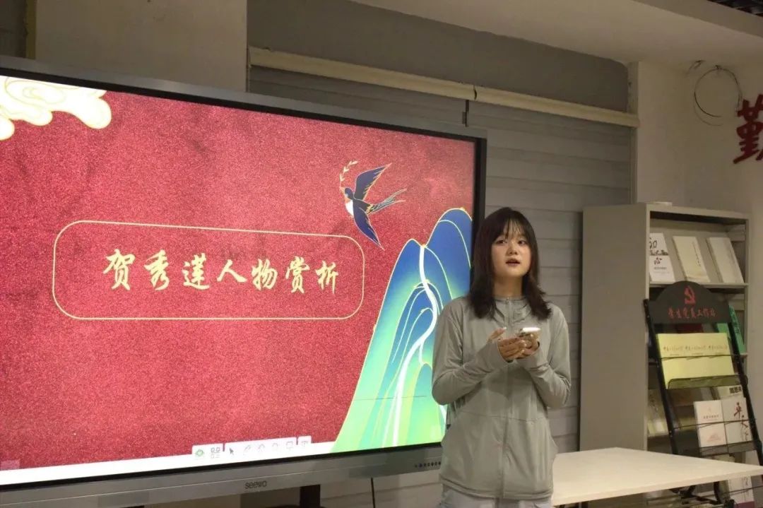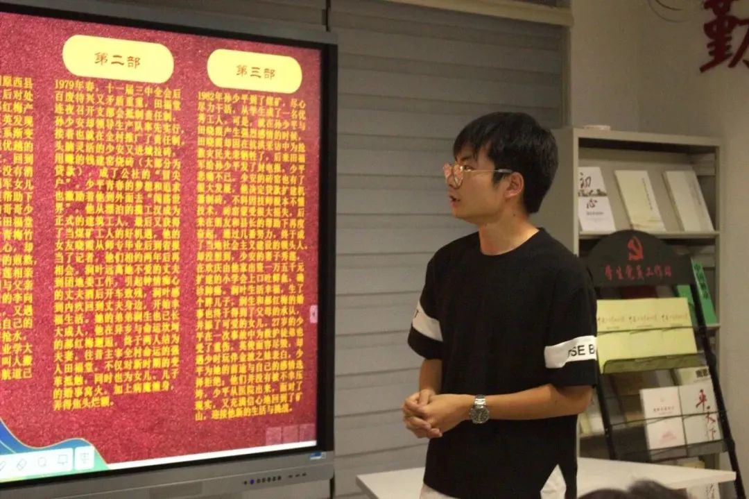 今年三月,读书会筹备时确定研究方法为分组研究法,将同学分为四个小组,每组成员分别展示了选题研究与阅读感受。读书会上,王英昊首先从作品简介、线索架构和作品构成三个方面带领同学们回忆了《平凡的世界》的基本内容。邓雅文代表第一小组以“我眼中的传统农村女性人物形象”为主题,结合原文具体分析贺秀莲和孙兰花两个农村女性的人生经历和独特性格,赞扬了默默无闻的农村女性对家庭、对社会的巨大贡献;张健齐代表第二小组分享了《平凡的世界》曲折的成书经历与文艺界对此书毁誉参半的情况,鼓励大家用心感受《平凡的世界》,收获属于自己的心灵感动;彭依九代表第三小组从贺秀莲的人物赏析出发,强调了读者需把人物放进时代背景中深刻理解;饶心雨代表第四小组从家人、乡邻和陌生人三个角度举例阐述了《平凡的世界》中令人温暖感动的人性美。