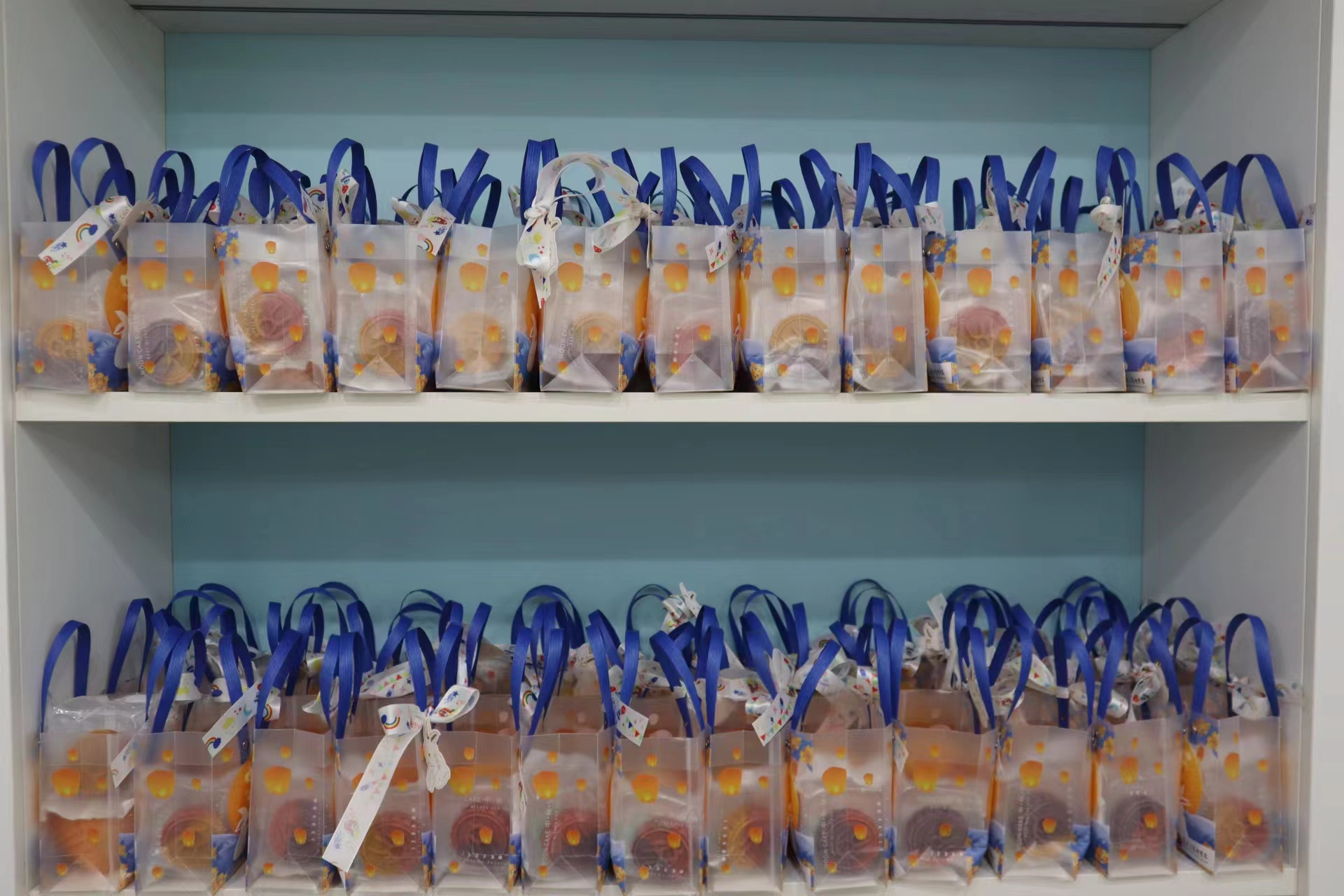 定制月饼和中秋祝福,嘱托大家要与同学和睦相处,尊师重道,常与父母联系。