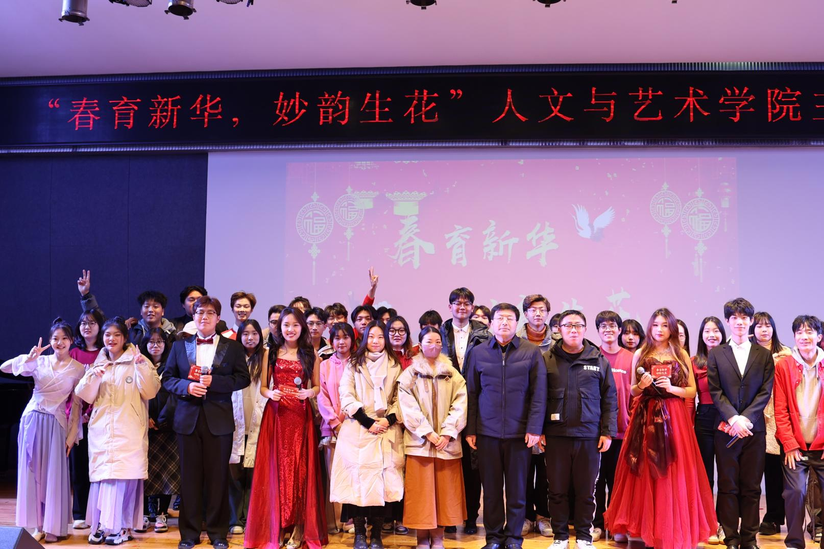 春育新华,妙韵生花。晚会多元化才艺表演给师生带来一场视听盛宴,以丰富的艺术性、思想性、文化性内涵庆贺新年到来,促进学生全面发展。祝愿同学们新年胜旧年,欢愉且胜意,以渺小启程,以伟大结尾。
