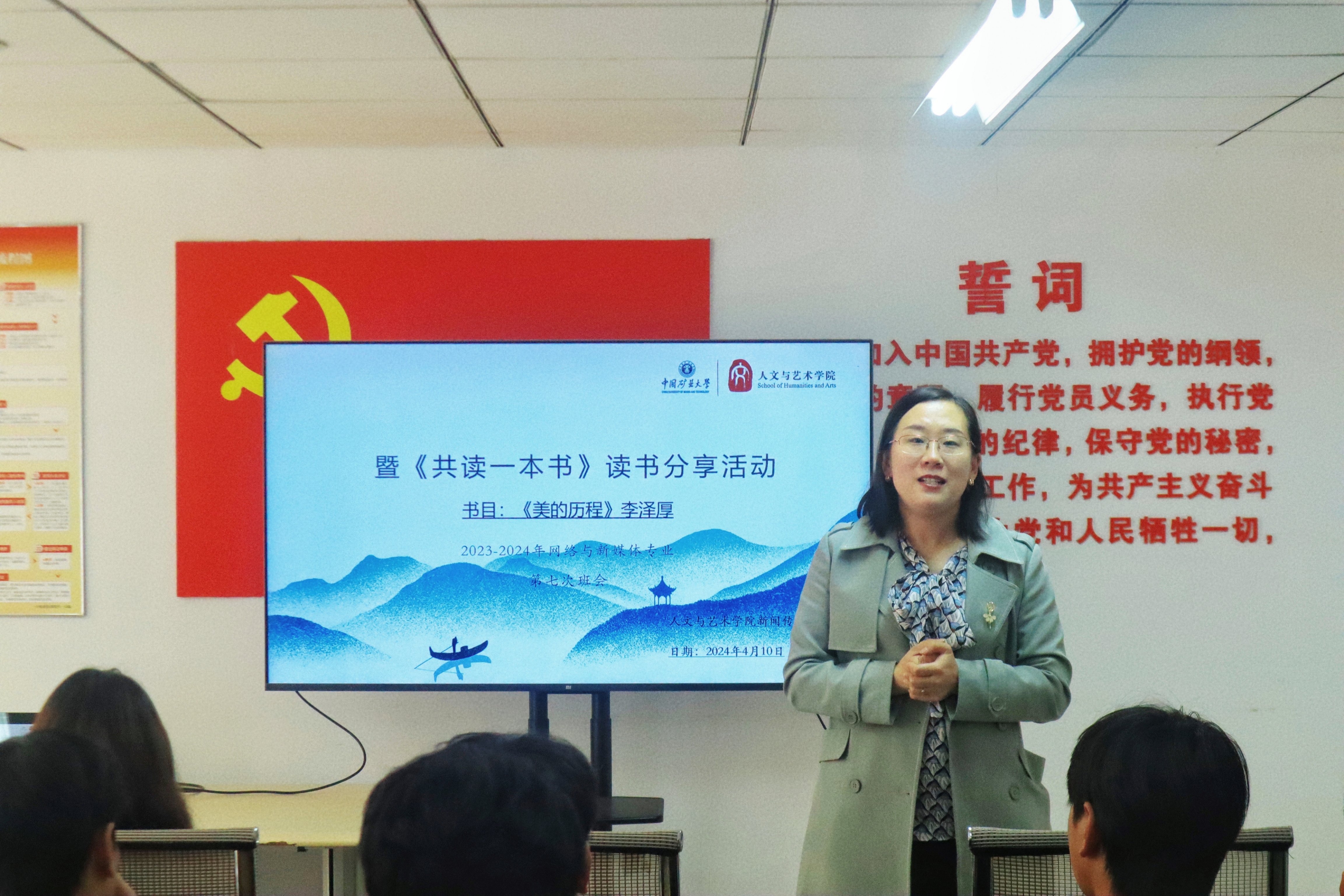 本期读书会阅读的书目是李泽厚的《美的历程》。主持人总体梳理了书籍的主要内容,随后徐清栀、王一凯、蒋伟豪、李文豪、刘扬、曹丽婷、蒋慧等七位同学分别分享阅读理解和感悟。徐清栀首先展示了她的书摘,随后谈到书中儒道互补的观念,以及美学在艺术创作方面的作用。王一凯向同学们介绍了美学产生的历程,认为美学的发展与时代的演化密切相关。李文豪在王一凯观点的基础上补充了关于美学产生历程的理解。曹丽婷介绍作者李泽厚的基本情况,谈论书籍的具体内容,强调要在日常生活中发现美,多欣赏美才会使内心丰盈。