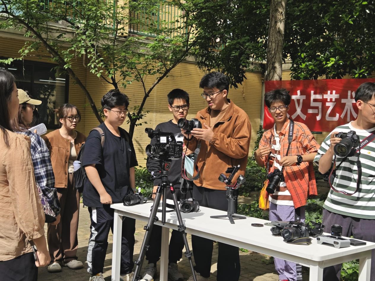 张瑞亭老师依据学生的相机使用能力,将其分为基础提升组和技能进阶组两组,他首先向基础薄弱同学介绍佳能、索尼、尼康等不同相机类型,区分器材不同部分及参数作用,就室内室外不同环境、人物景物不同景象拍摄方式进行具体说明。之后摄影协会同学与人文必发