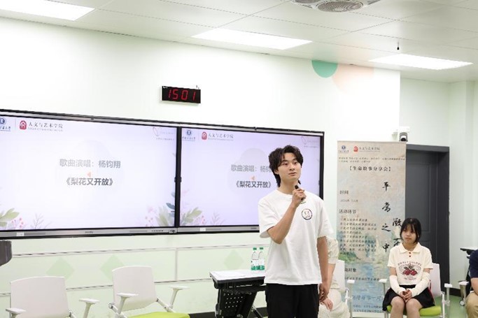 杨钧翔同学演唱的开场歌曲⟪梨花又开放⟫,将现场观众带入宁静温暖的氛围里。