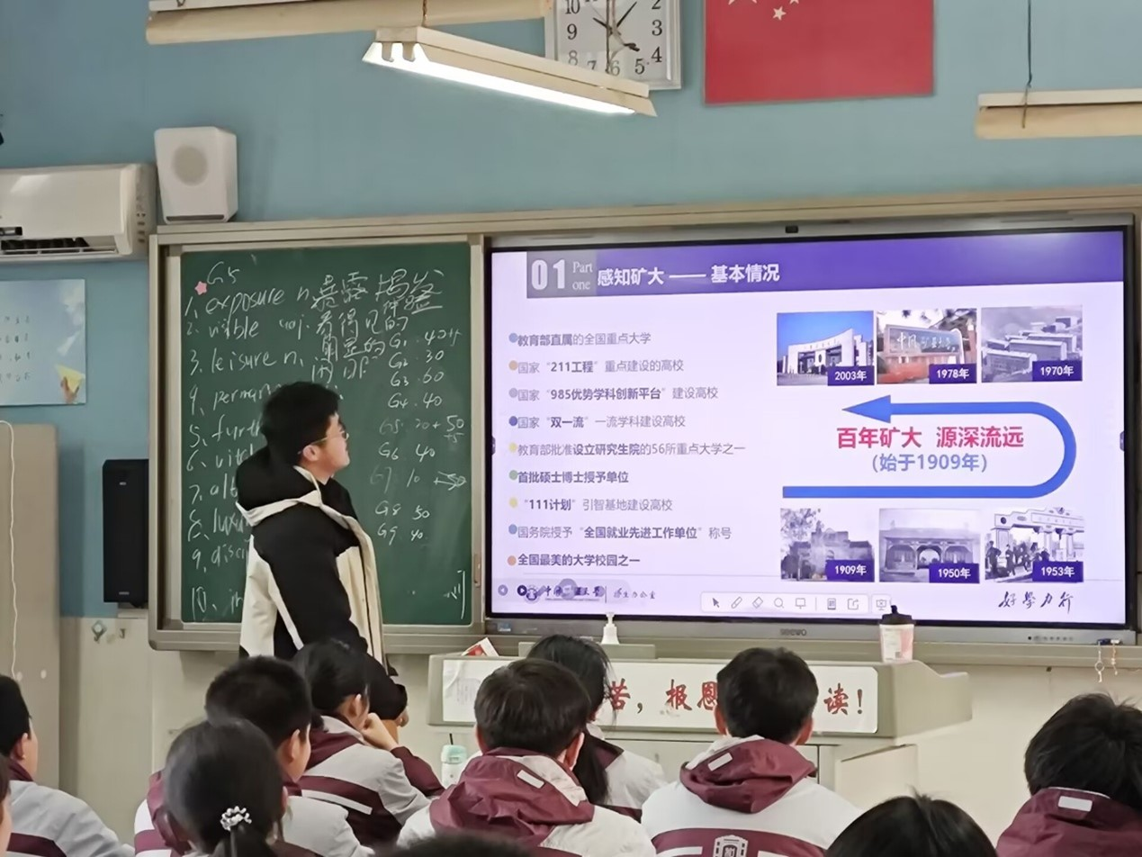 的韩宇欣同学秉持传承矿大优良学风、助力母校培育人才的原则,回到济南市历城第二中学开展“母校行”宣讲活动。队员们采用PPT讲解结合互动的方式,从学校简介、校园生活、学习心得三个方面与同学们展开交流,向学弟学妹们详细介绍了中国矿业大学的学校概况、四季美景、学科水平等内容,并依据矿大的突出优势进行重点讲解,全方位展现了大学的魅力。在互动环节中,学弟学妹们踊跃提问。此次“母校行”活动成效显著,不仅增进了其母校师生对矿大的了解与认知,还传承了矿大精神,助力未来我校注入更多新活力。