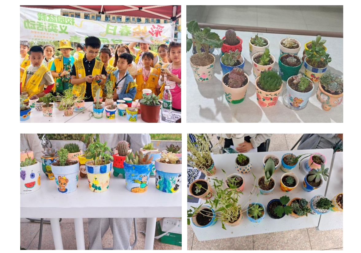 活动期间,主办方统一购买花盆,志愿者们发挥想象力和创造力,在花盆上绘制精美的图案,并将多种植物栽入花盆,填土浇水。义卖阶段,主办方收取盆栽,并于二食堂广场义卖,各式各样的创意盆栽吸引了众多矿大学子与进校参观的孩子们欣赏、购买。活动获得的善款和盆栽将用于绿色之家公益组织开展的绿色公益项目。