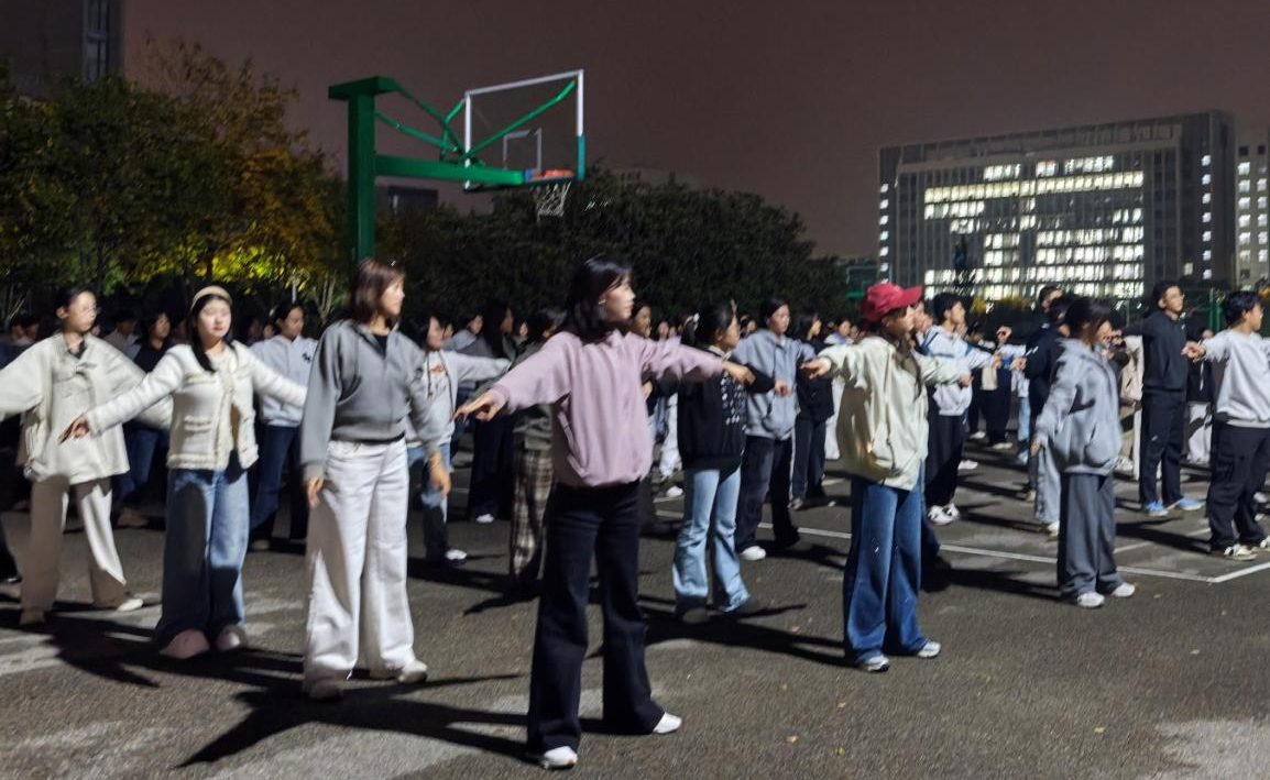 组织百人方阵,在两周的时间内进行了多次排练。期间,院学生会体育部负责组织安排方阵流程以及指导广播操动作,辅导员老师多次到现场指导排练工作。方阵队员们态度积极,充分利用课余时间打磨动作细节。比赛现场,必发