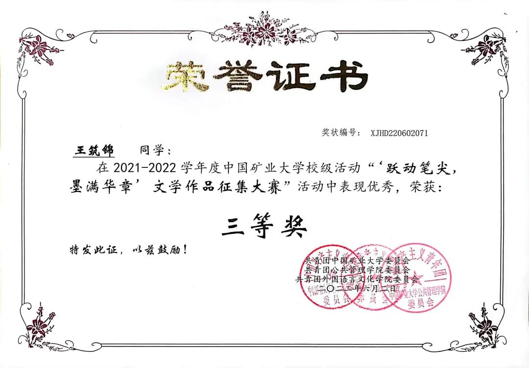 在学习生活中,王筑锦秉持着“但行好事,莫问前程”的信条,专注于眼前的工作,不过度担忧未来的结果。她奉行“学问勤中得”的原则学好专业课程,对于课堂上较难的内容,会在课后反复学习,直至真正理解。临近考试,她会全面复习教材,整理框架,多次回顾,确保对知识掌握得当。正因深知只有不断学习和实践才能获得成长,因此她从未停下求索的脚步,像毛虫一样不停地啃食知识的叶子,在认识到条理清晰、逻辑严密的语言表达对从事法律方面工作至关重要时,便不断锻炼自己的语言表达能力,努力弥补自身不足之处。