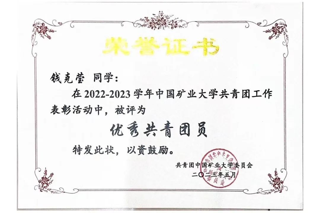 马克思主义理论专业。曾获中国矿业大学优秀共青团员、中国矿业大学优秀志愿者、中国矿业大学社会实践先进个人等称号,获中国矿业大学二等奖学金两次,参与省级创新创业项目一项,主持校级创新创业项目一项,主持省级社会实践项目“七彩绘乡村,青春助振兴”一项。