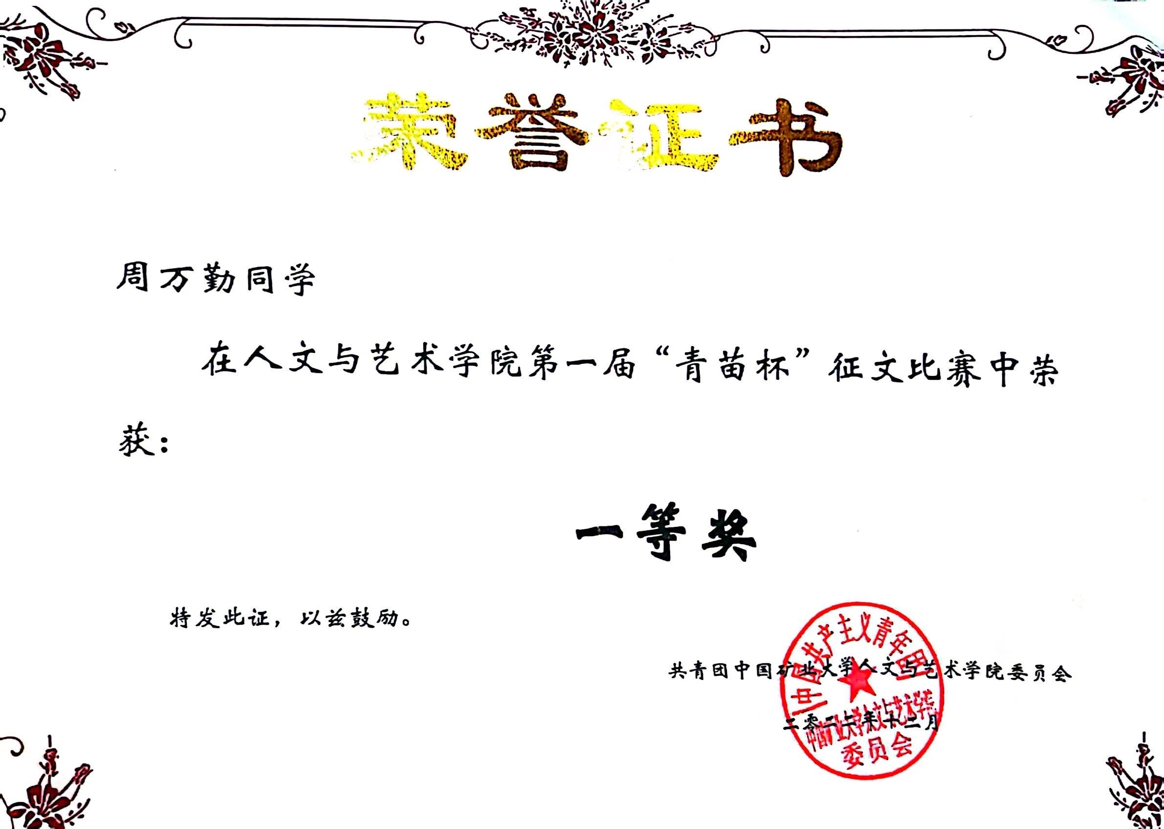 活动创作歌词、剧本各一篇;曾参与全国大学生志愿服务社会实践并创作歌词一篇,于西北大学创意写作中心发表散文一篇。曾参与“推普助力乡村振兴”项目获市级优秀团队表彰,参与挑战杯“引星火明童心梦想”项目获全国百强实践团队荣誉。曾担任学校学工处考核中心副部长、必发