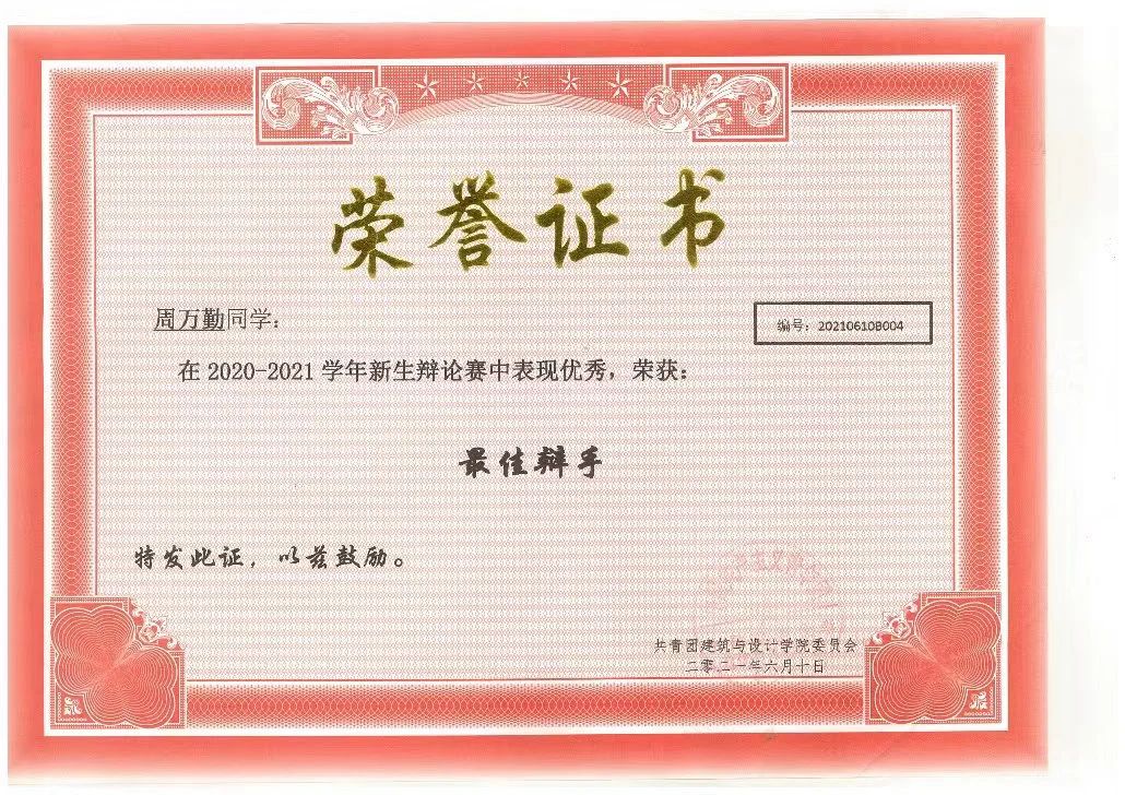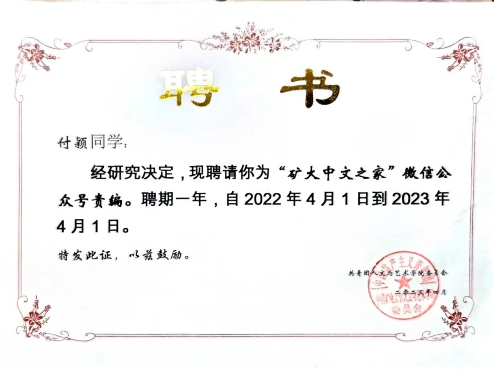 2020级汉语言文学专业本科生,保研至厦门大学语言学及应用语言学专业。曾获国家励志奖学金两次、中国矿业大学二等奖学金一次;曾参与发表中文核心cssci一篇、cssci扩展版一篇,参与导师省部级课题一项,主持校级课题一项。曾参与全国马拉松锦标赛志愿者、高考志愿填报帮扶等多项公益事业。曾任建筑与设计必发