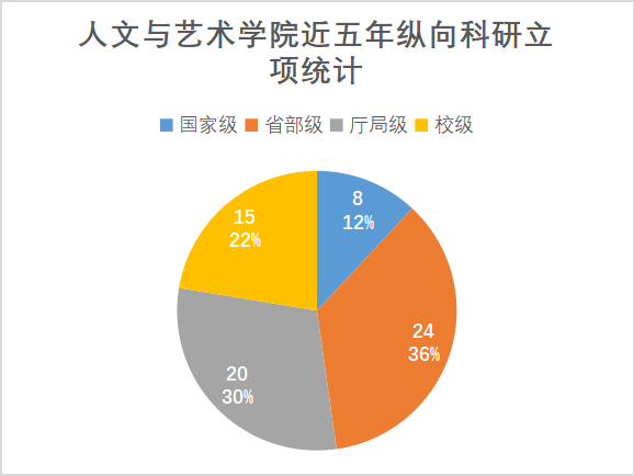 教师共获得各级别纵向科研立项65项,其中国家级和省部级立项共30项,占立项总量的46%(统计见图:必发博彩