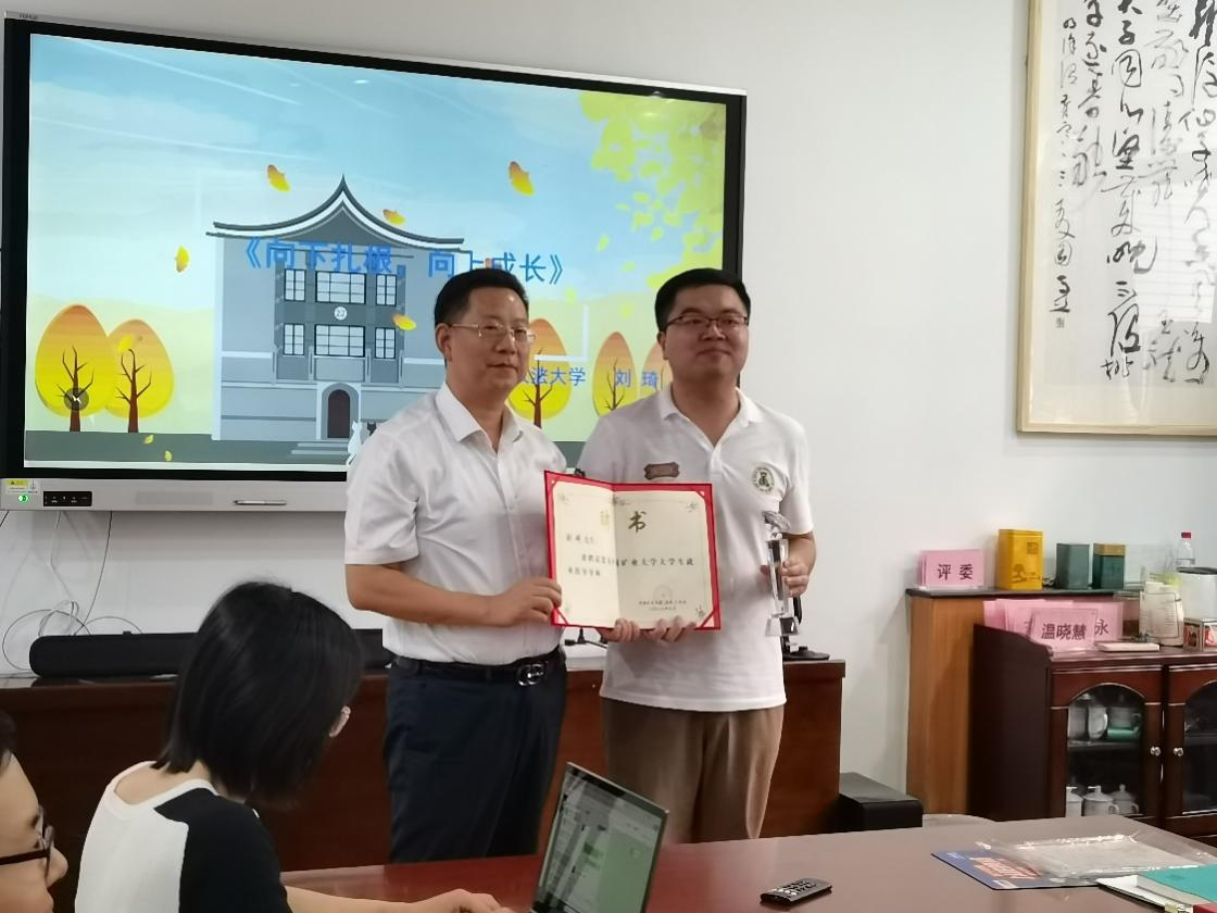 党委书记方跃平为刘琦颁发聘书和奖杯