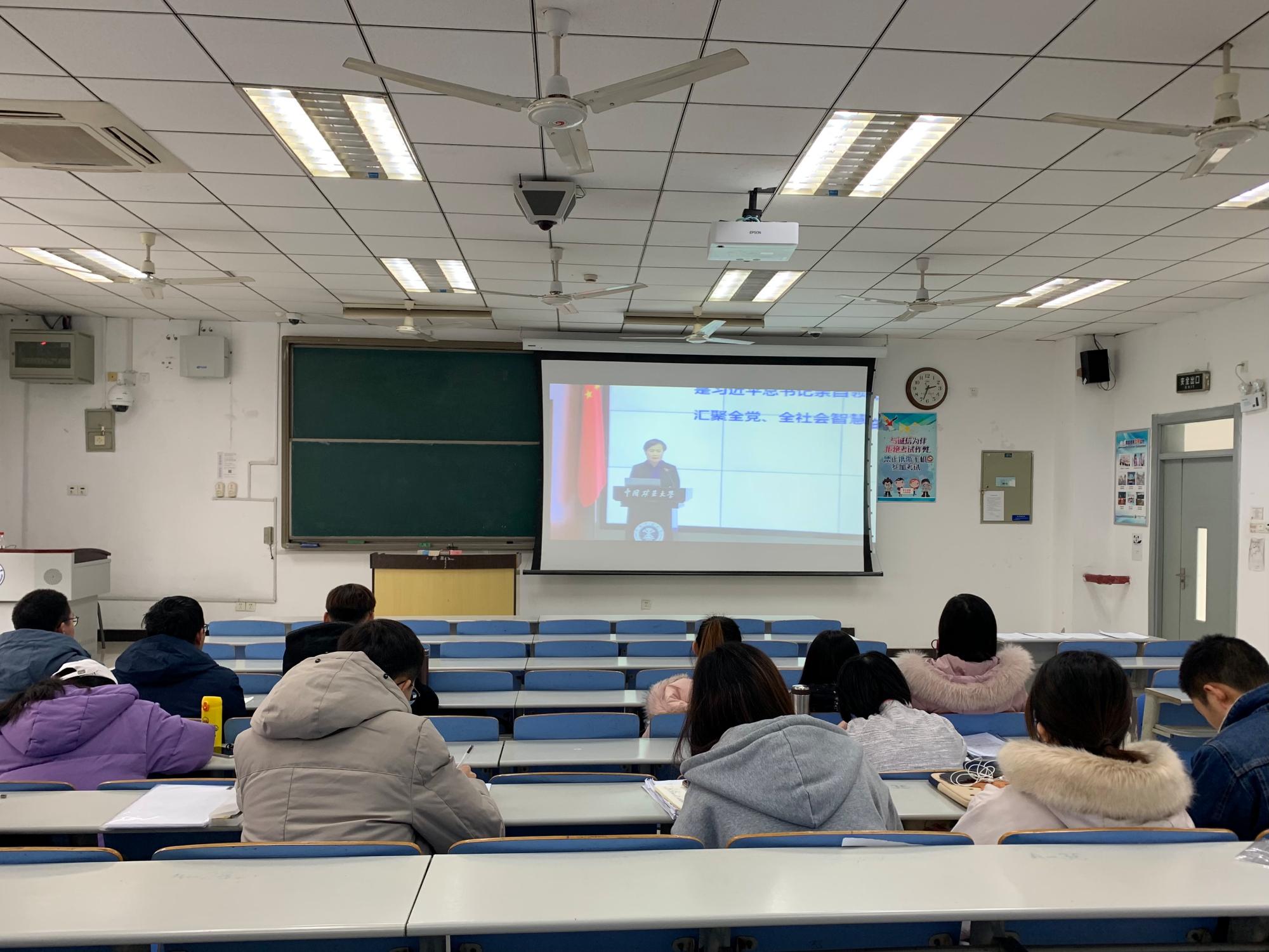 刘波书记简明扼要地介绍了“全会”的由来与历史,说明其对于党工作方向和政策的重要性。她将十九届五中全会的精神与中国社会现实相结合,深入浅出,阐明了“十四五”规划的重要性与前瞻性,如美国近年来与中国针锋相对的严峻局面和新冠疫情对于国内经济的冲击等等,都与“国内大循环、国内国际双循环”战略部署息息相关。此外,刘波书记还鼓励各位党员要乘着党和国家政策与战略的东风,努力为建设现代化国家贡献自己的力量。