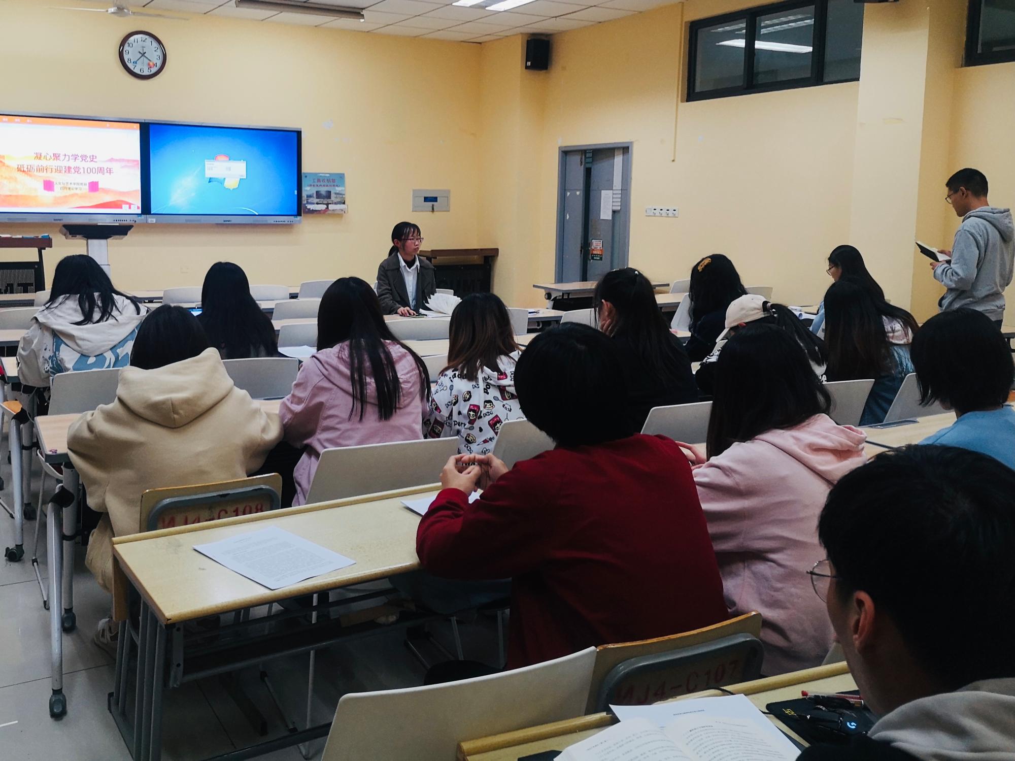 例会伊始,党站副站长常明慧主持开展了对《居安思危——苏共亡党历史教训》纪录片观后感的分享与讨论。在讨论中,党站成员们踊跃参加,积极发言。张晋博同志说:“我通过观看纪录片联想到了自己的的大学生活,我认为作为一名生活在物质条件富裕环境下的大学生,更要怀有坚定的信仰,以抵制腐败与各种妖风邪气。”紧接着,马钰莹同志带领大家学习了《习近平在党史学习教育动员大会的讲话》,并通过播放爱国主义题材动画《那年那兔那些事儿》,使大家对党史学习有了更加浓厚的兴趣以及更加深刻的认识,有效地调动了大家的学习积极性。最后,马钰莹同志组织了党史知识问答竞赛,竞赛涉及到长征、遵义会议等关于党史的各个重要史实,使全体党员得以巩固本次党史学习的成果。