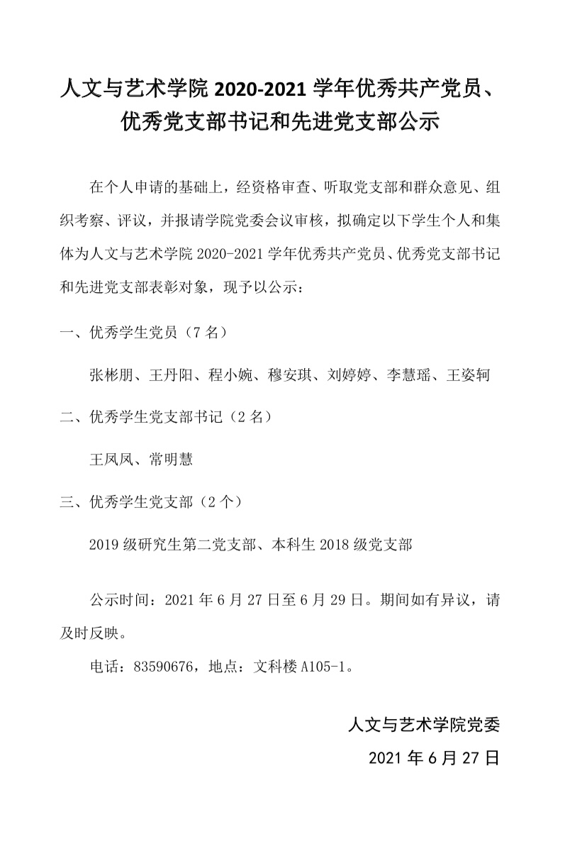 必发博彩 2020-2021学年优秀共产党员、优秀党支部书记和先进党支部公示
