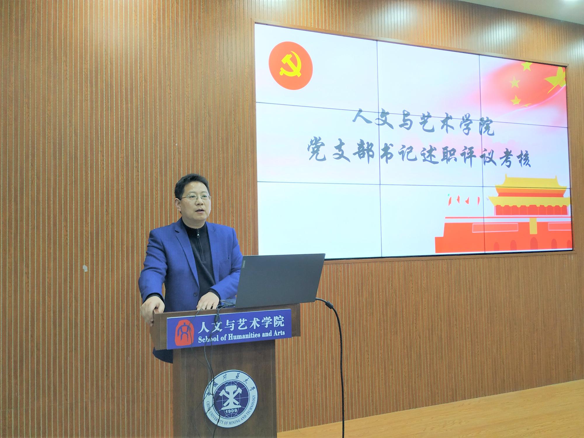 于文科楼A111举行党支部书记述职评议考核活动,党委书记方跃平、党委副书记丁恒星、兼职辅导员何军、杨安华出席本次活动,必发