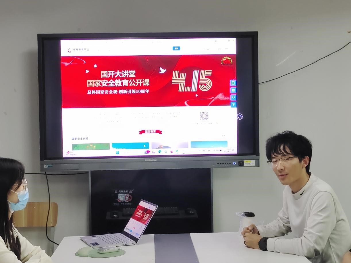 会议开始,全体成员共同观看国开大讲堂国家安全教育公开课,学习了解国家安全观的主要领域和核心要义。同学们认识到总体国家安全观是一个内容丰富、开放包容、不断发展的思想体系,其核心要义可以概括为五大要素和五对关系,视频通过理论概念和具体案例结合的形式,让学生党员对国家安全有了更为全面的理解。