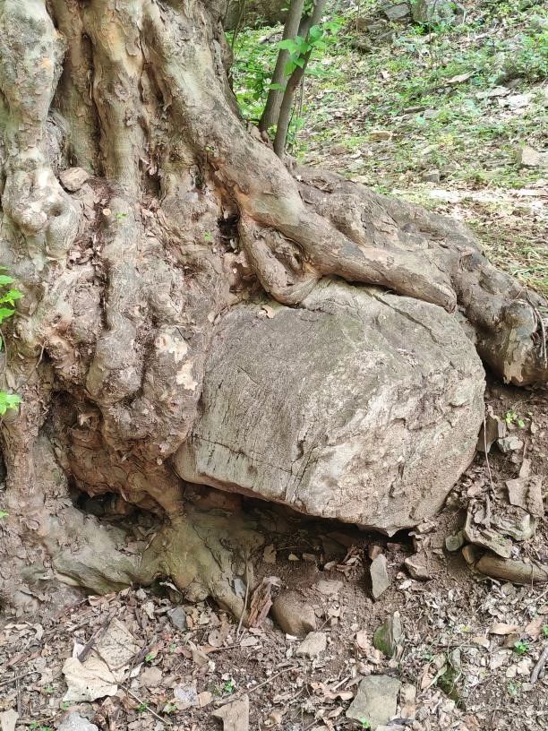 考察团的最后一站是位于皇藏峪国家森林公园的天门寺,这里保存了完整的佛教建筑和文化遗迹,展现了天门寺深厚的历史文化底蕴。师生们在这里参观寺庙建筑、佛像等文物。在欣赏奇石抱树的自然景观时,赵先生提到了苏轼的名画《木石图》(又名《枯木怪石图》),这幅画是苏轼任徐州太守时亲往萧县圣泉寺时所创作的一幅纸本墨笔画,在创作此画时,苏轼可能正处于人生的低谷,他以枯木怪石自喻,表达了自己坚韧不屈、傲然独立的精神风貌。