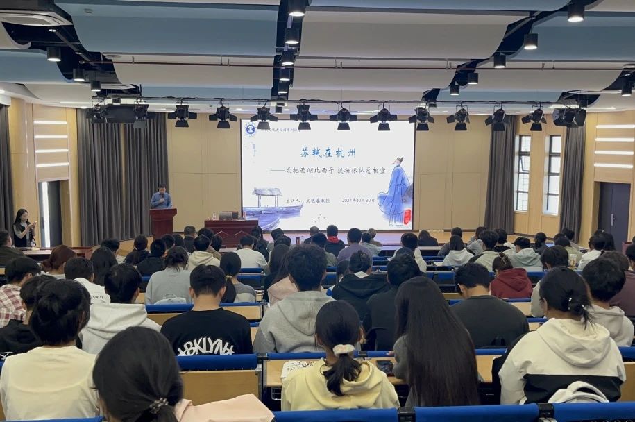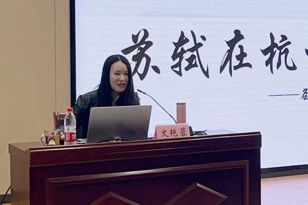 10月31日下午,苏轼研究院副院长文艳蓉教授在中国矿业大学镜湖大讲堂开讲“诵读经典,走近苏东坡”系列讲座第四讲:苏轼在杭州——“欲把西湖比西子,淡妆浓抹总相宜”。本次讲座由校团委贺瀚主持。苏轼研究院荣誉院长罗承选教授、院长管仁福教授、常务副院长闫续瑞教授等嘉宾出席。