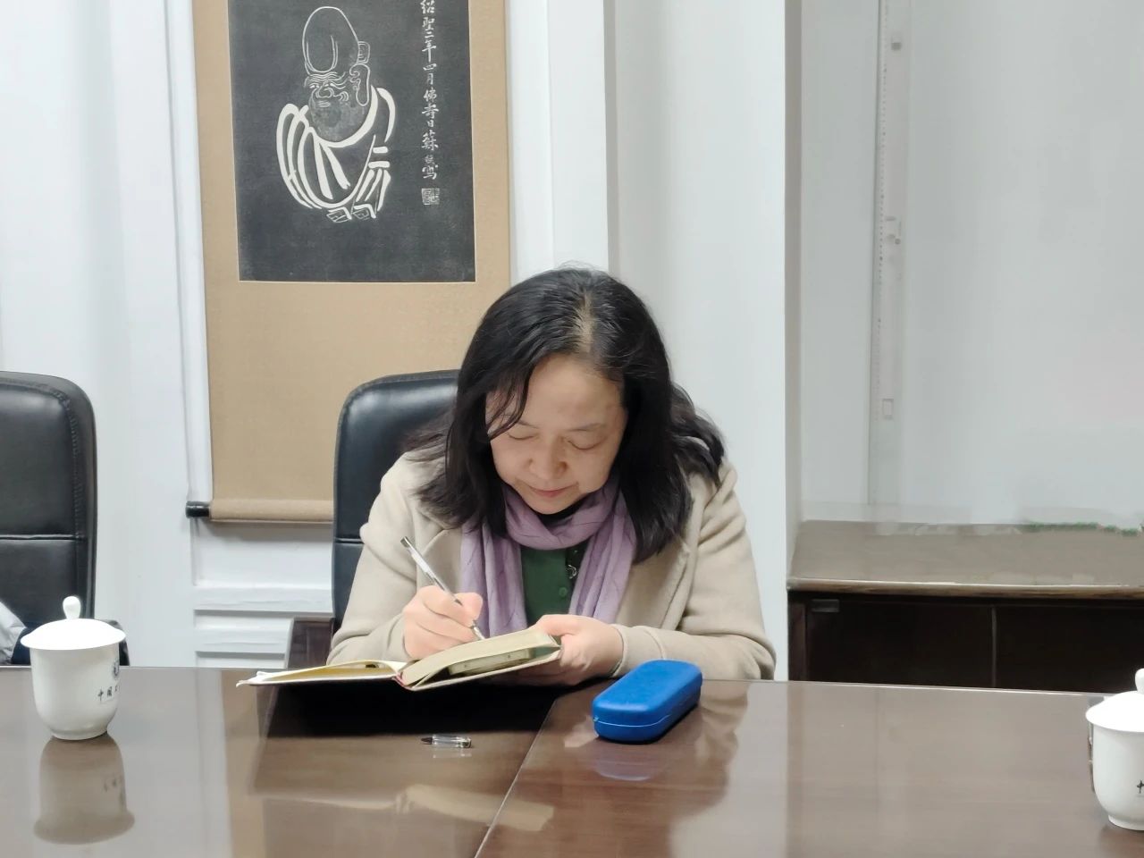 中文系日籍外教)、办公室主任李贞及7名研究生共13人参加会议。