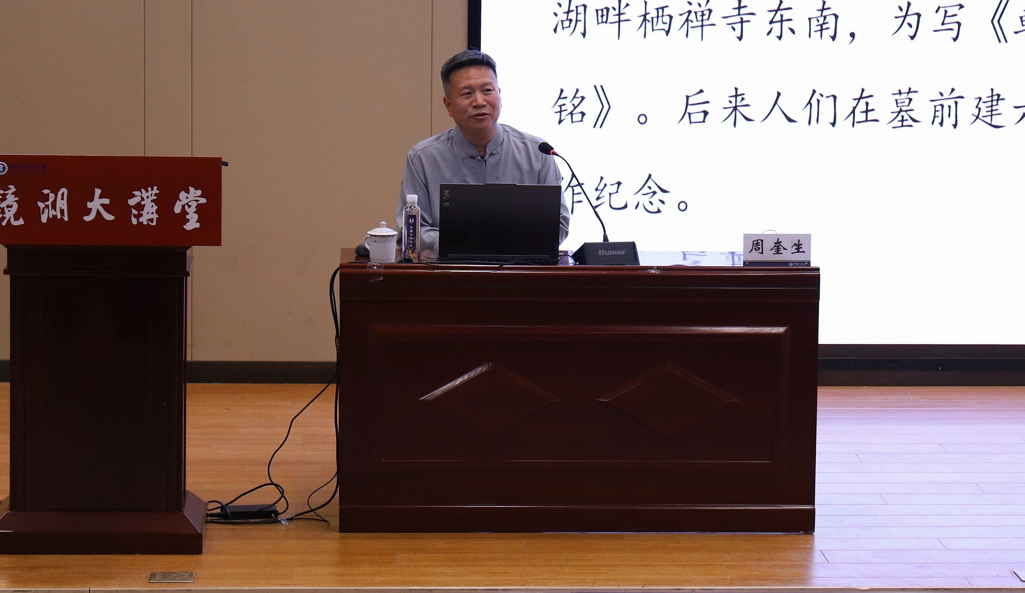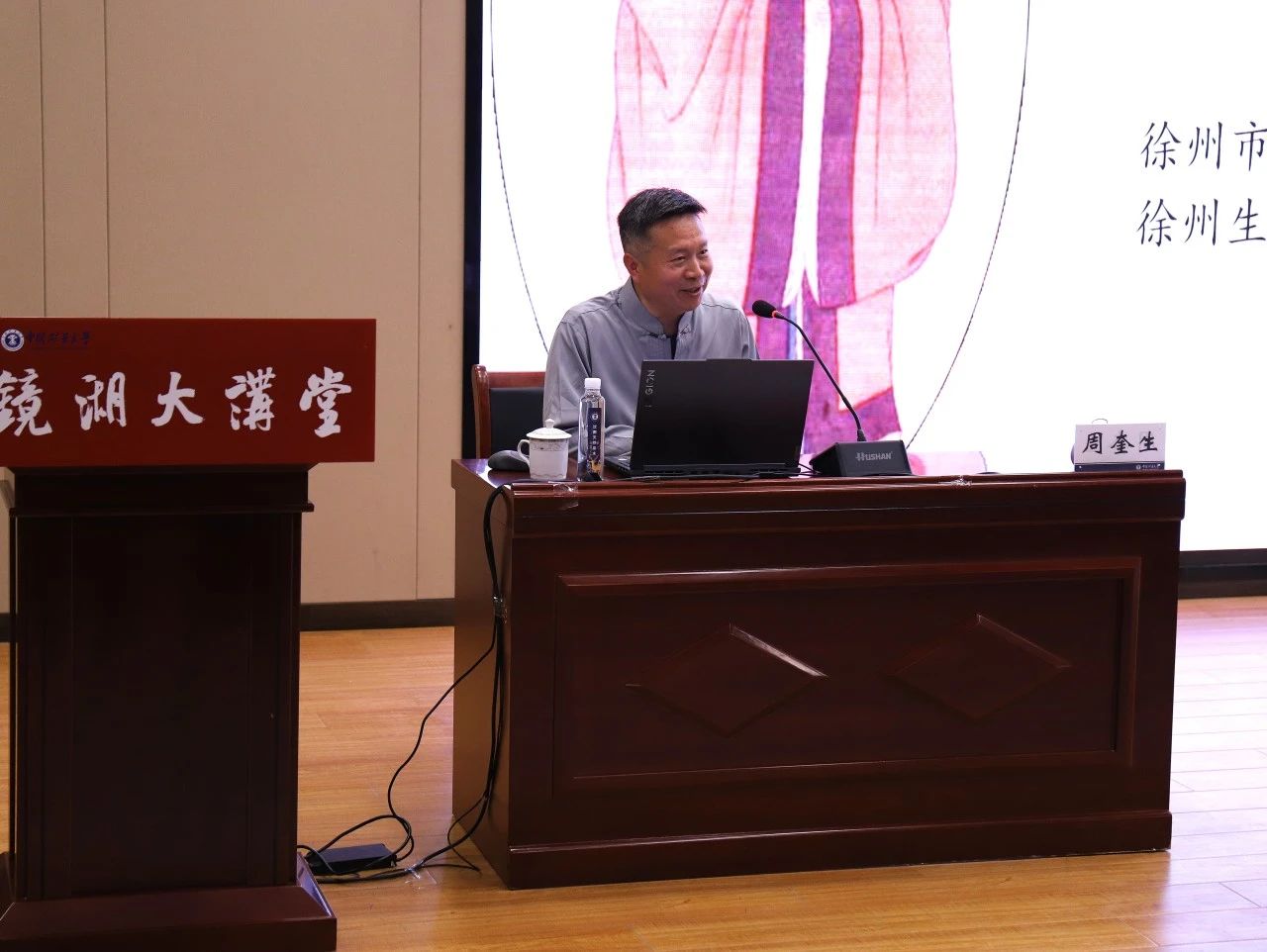 教授、中国苏轼研究学会会员、徐州市苏轼文化研究会副会长周奎生在中国矿业大学镜湖大讲堂开讲“诵读经典,走近苏东坡”系列讲座第五讲:苏轼在惠州——“日啖荔枝三百颗,不辞长作岭南人”。